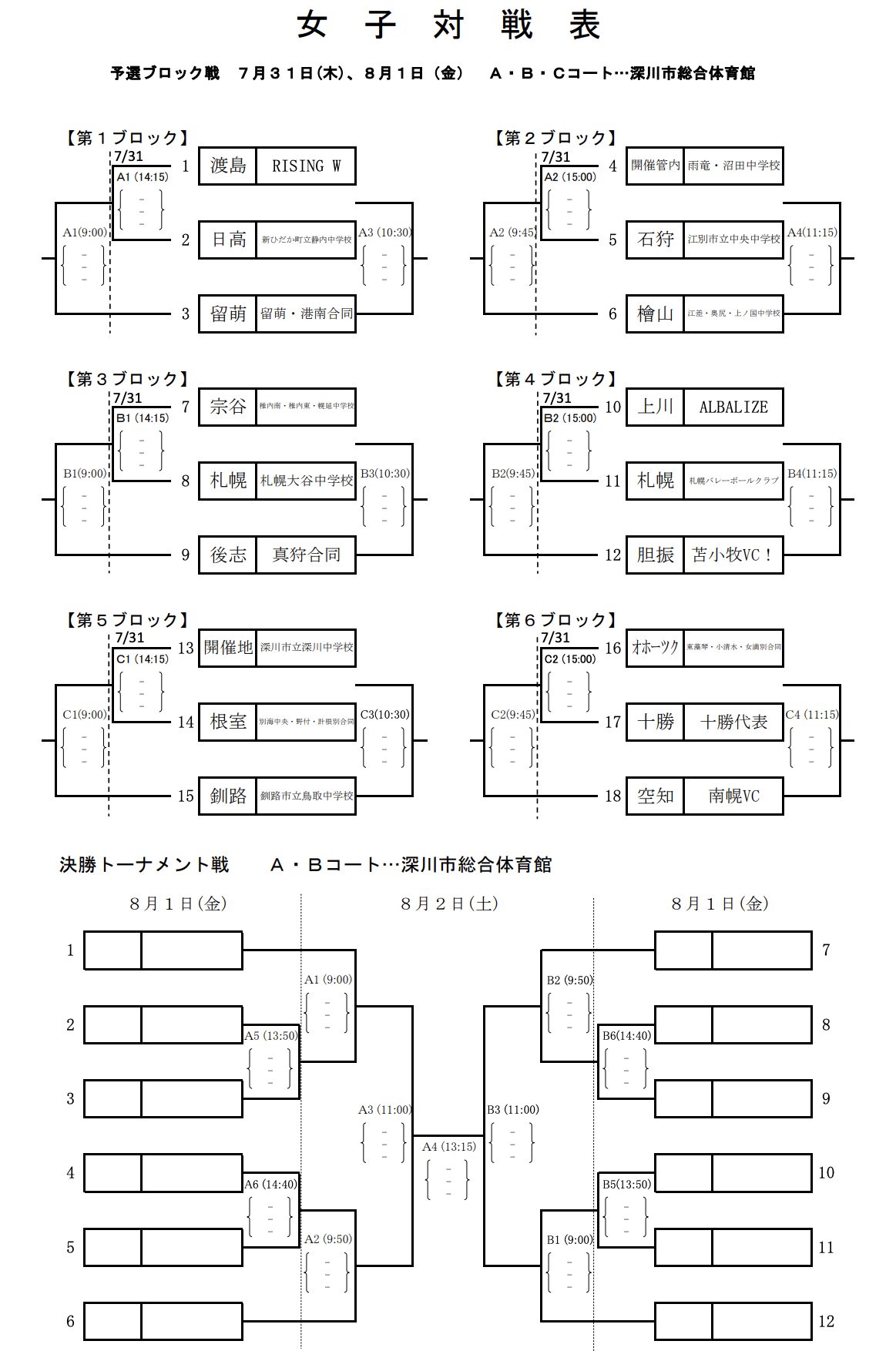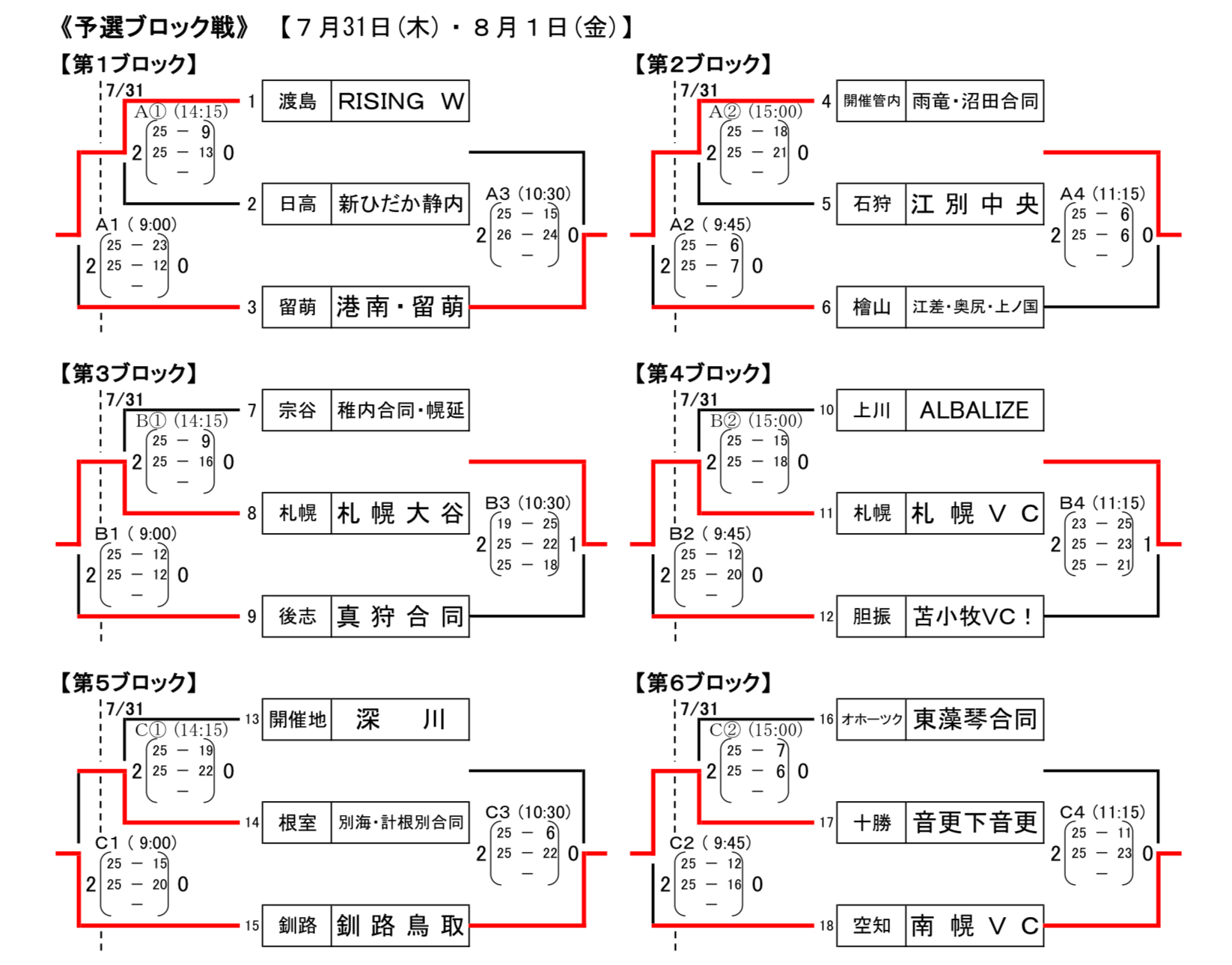 予選ブロック戦 7月31日(木)