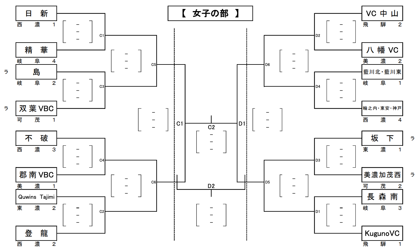 | 藍川北・藍川東 | 2 | 25-15 23-25 25-17 | 1 | 輪之内・東安・神戸 |