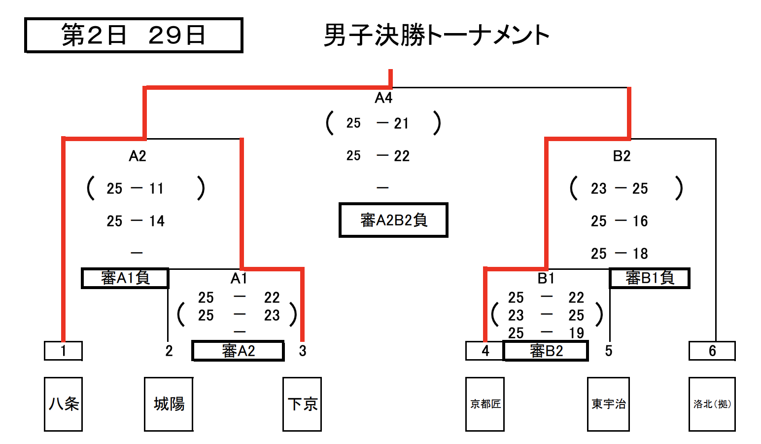 京都府で開催されています令和7年度 第55回全日本中学校バレーボール選手権大会府予選男子の全ての試合が終了しました。
