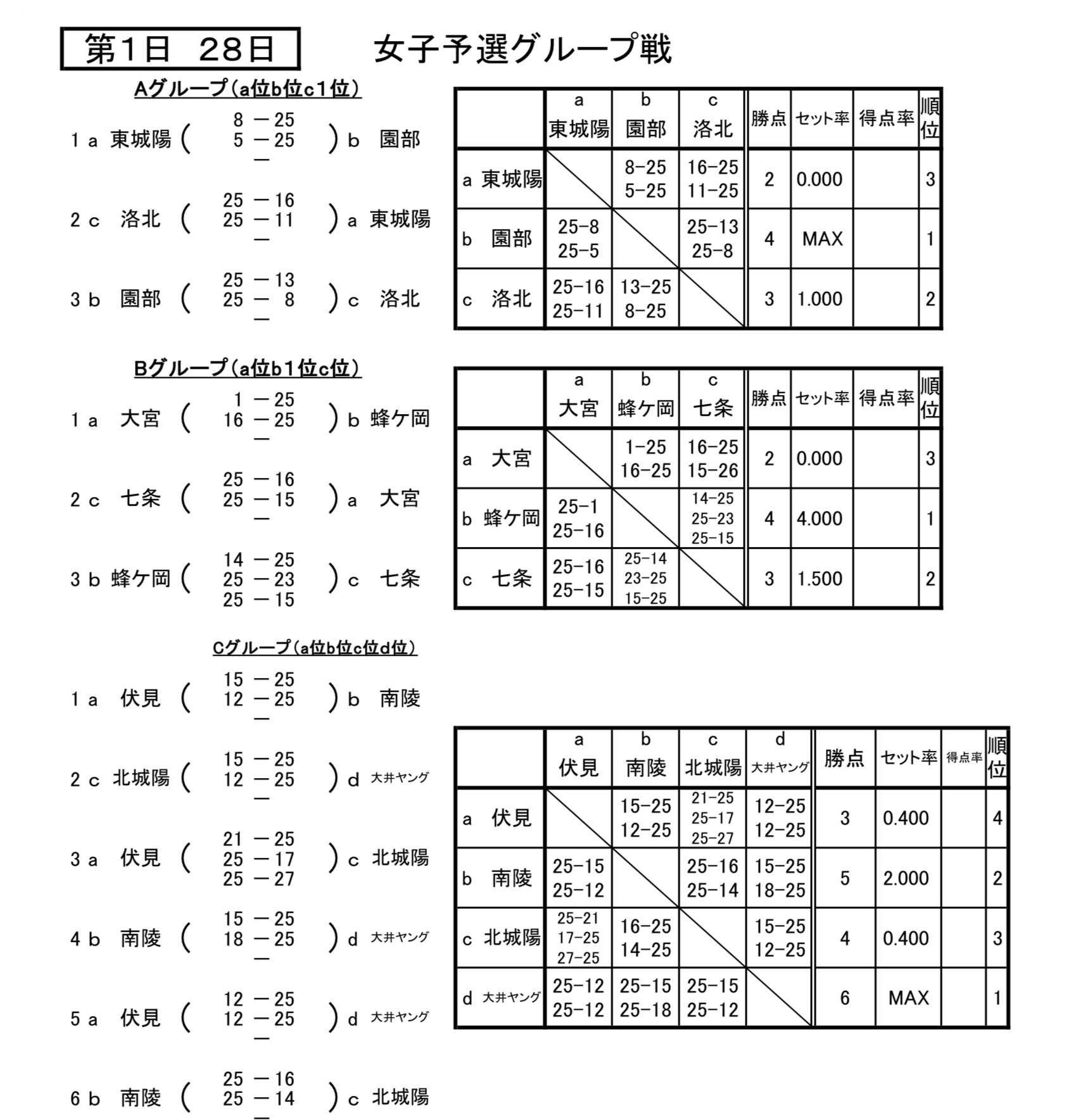 | 南 陵 | 1 | 20-25 25-22 22-25 | 2 | 園 部 |