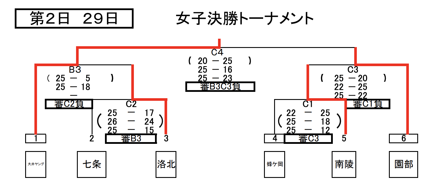 | 大井ヤング | 2 | 25-5 25-18 | 0 | 洛 北 |