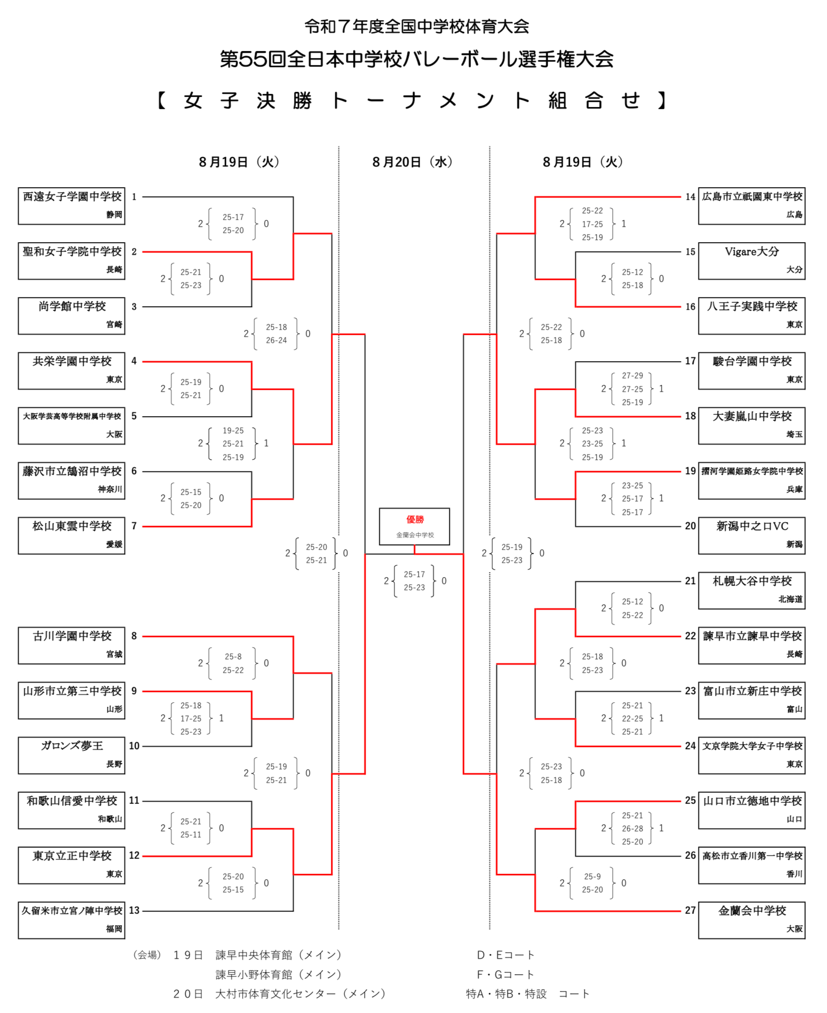 | 東京立正 (関東5/東京) | 0 | 17-25 23-25 | 2 | 金蘭会 (近畿1/大阪) |