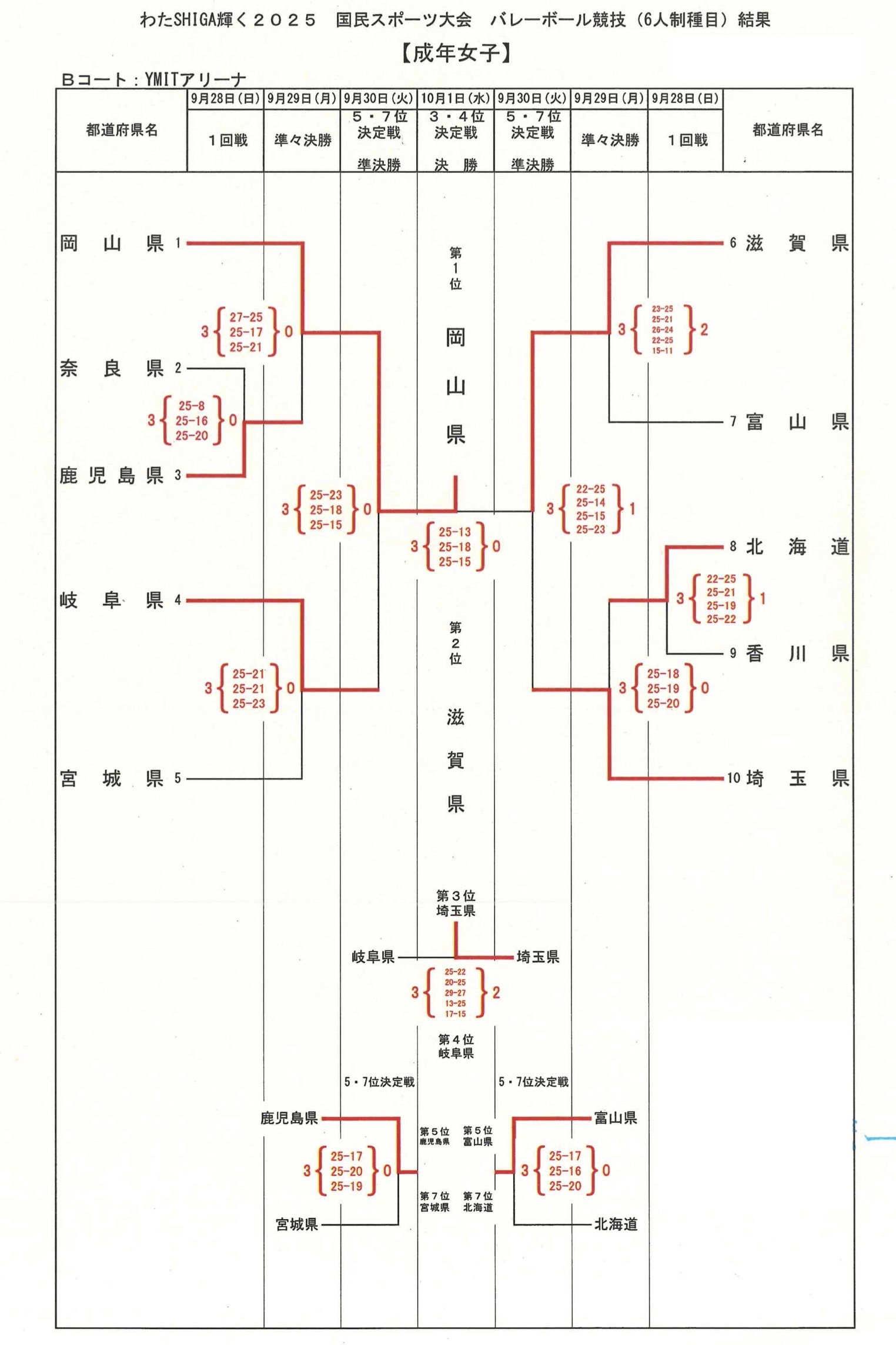 2025 SHIGA国スポ|第79回国民スポーツ大会バレーボール競技 成年女子試合結果