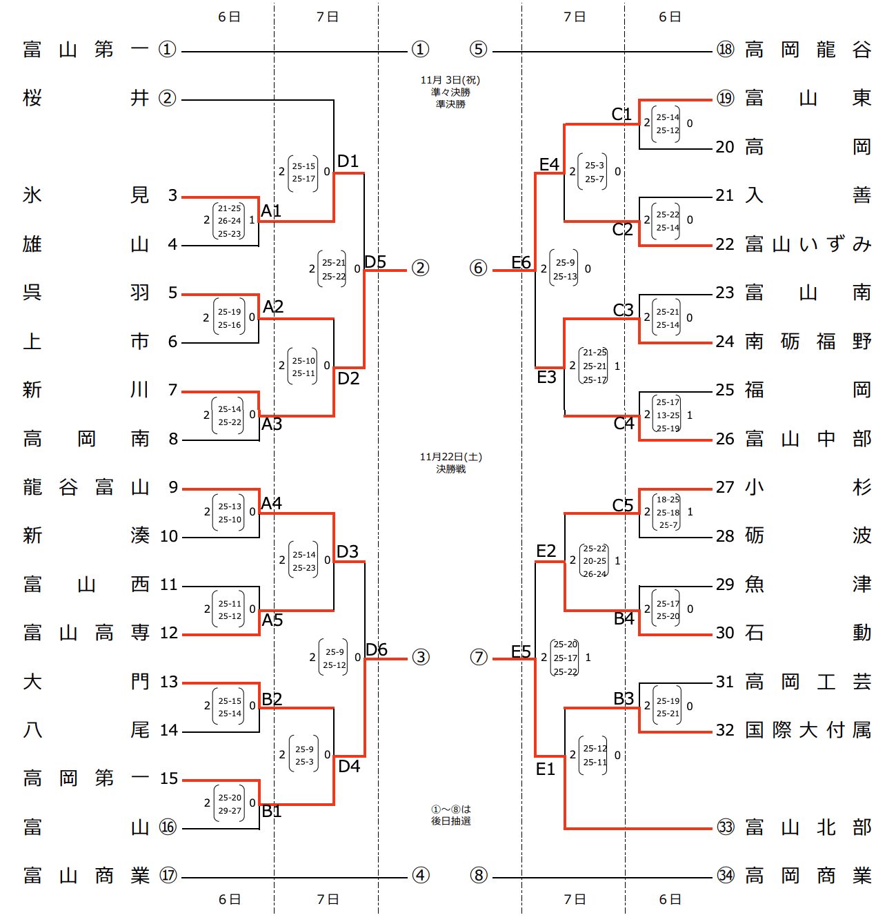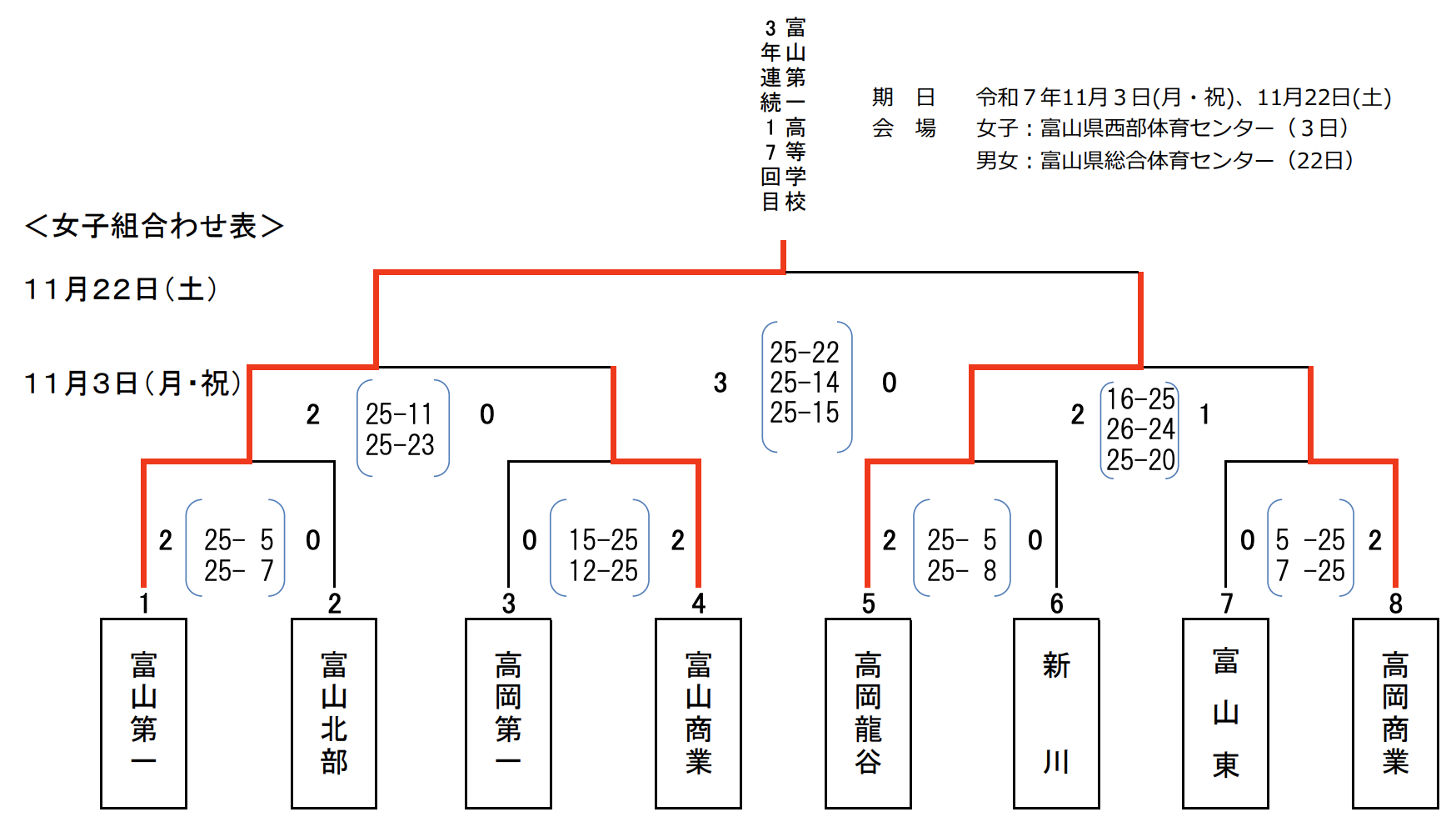 | 富山第一 | 2 | 25-5 25-7 | 0 | 富山北部 |