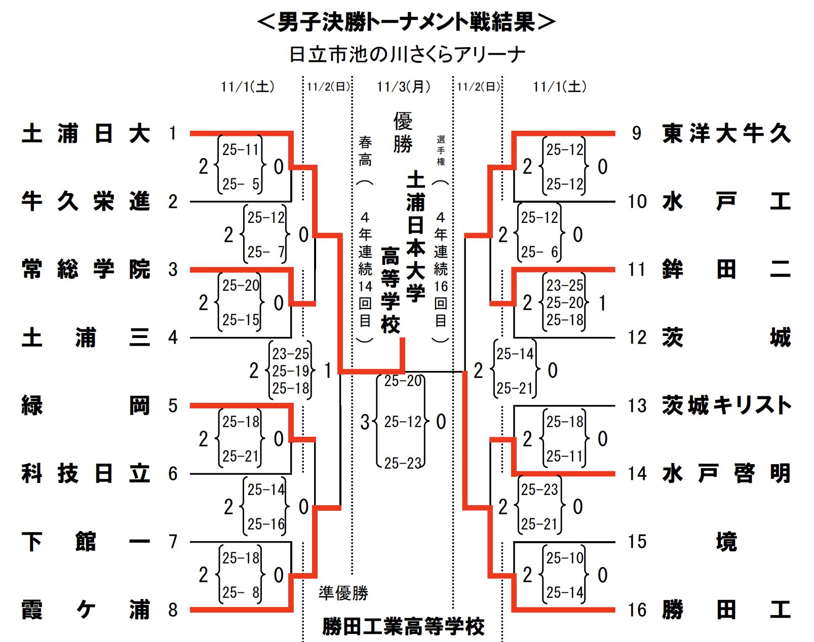 優 勝 土浦日大高校(4年連続14回目)