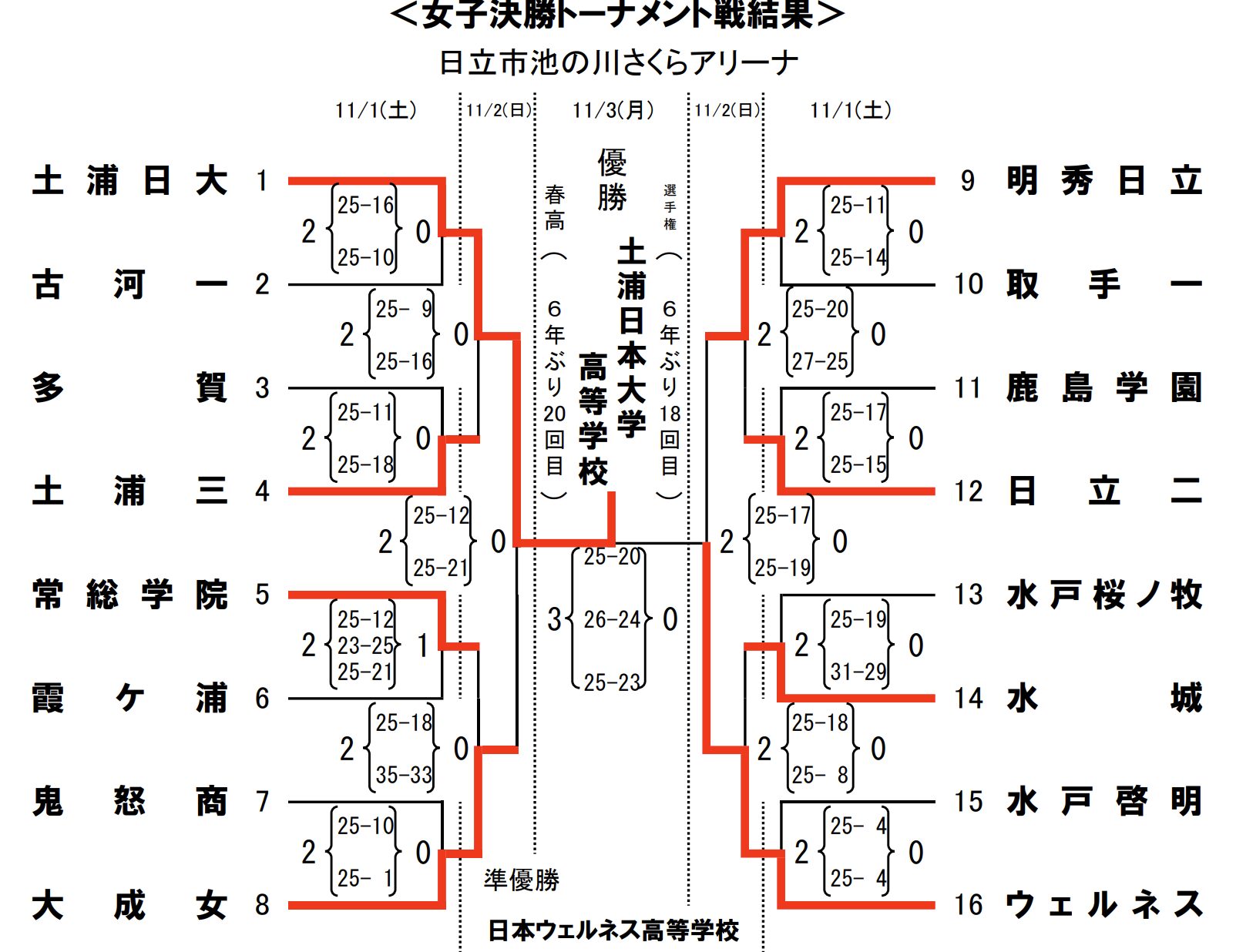 | 土浦日大 | 3 | 25-20 26-24 25-23 | 0 | ウェルネス |