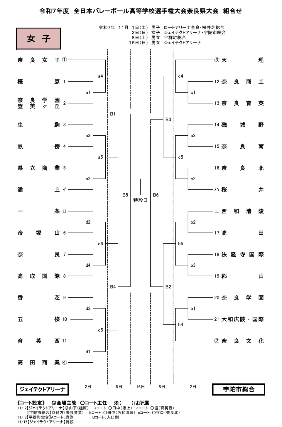 一方女子は、奈良女子高校、奈良文化高校、天理高校、高田商業高校が中心になるかと思います。
