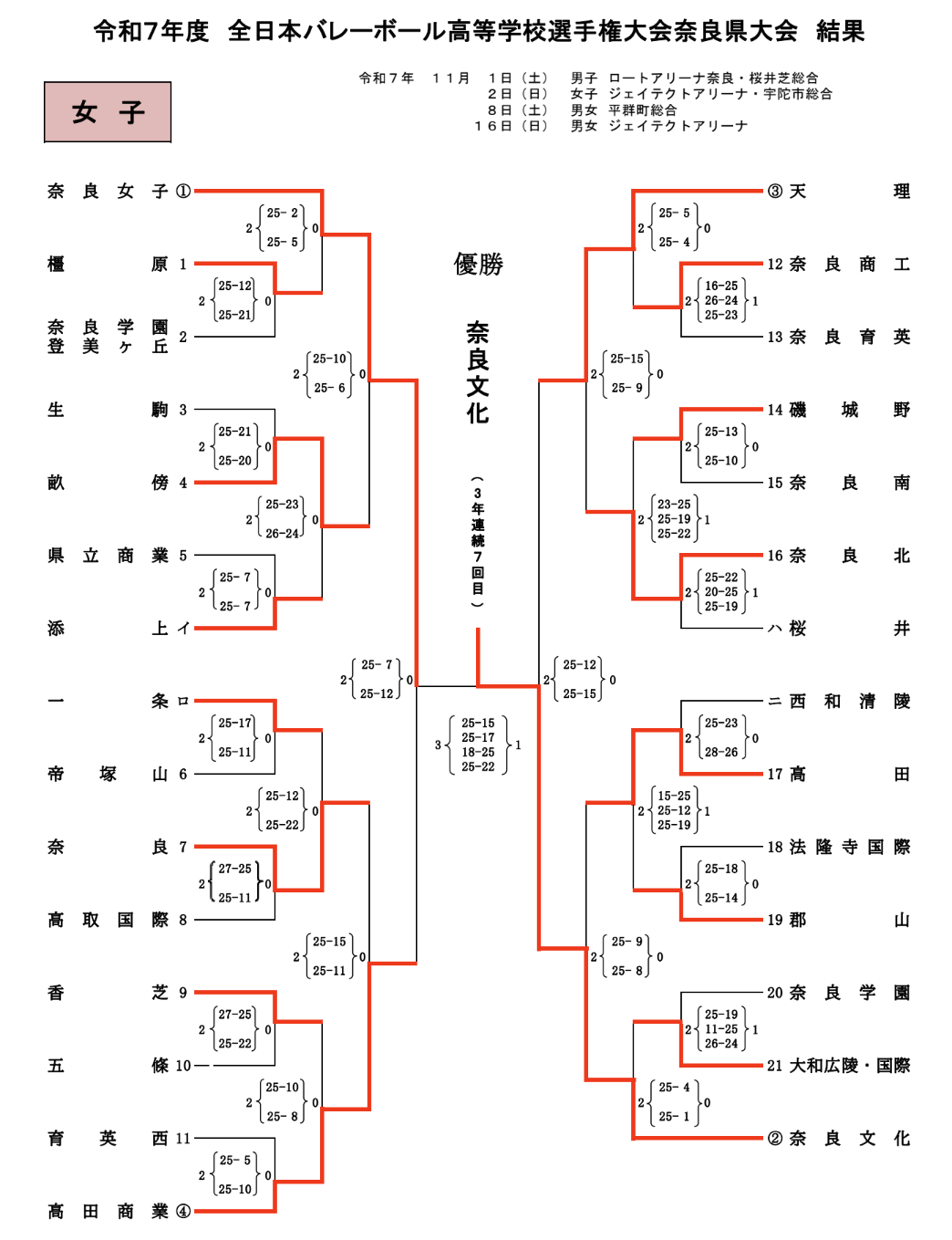 2025年度『第78回全日本バレーボール高等学校選手権大会 奈良県代表決定戦』女子の全試合が終了しました。