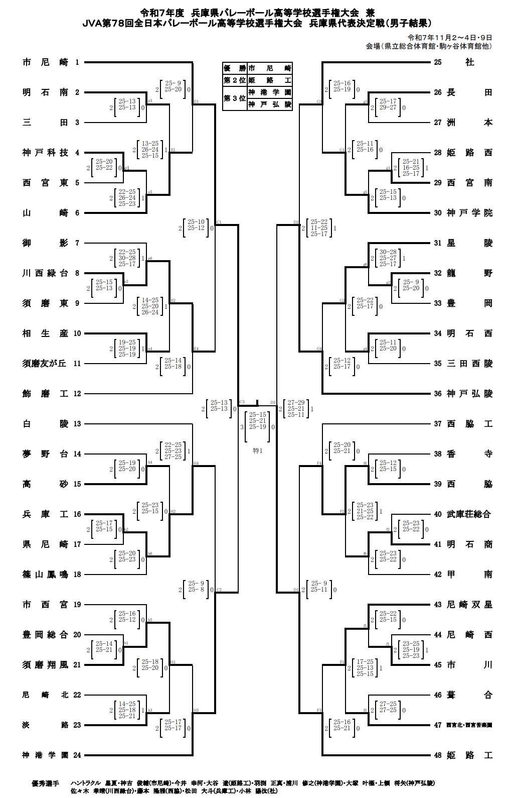 2025年度『第78回全日本バレーボール高等学校選手権大会 兵庫県代表決定戦』男子の全試合が終了しました。
