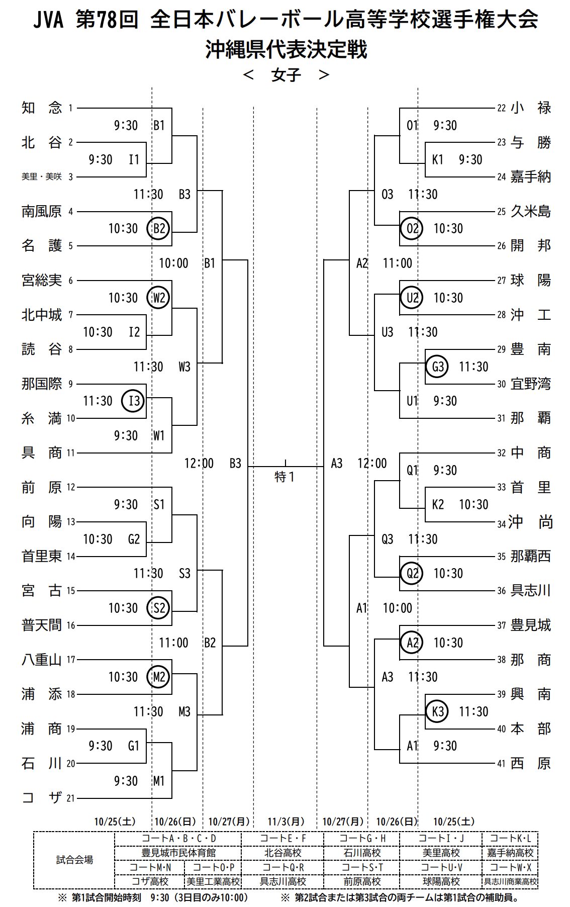 豊見城市民体育館、具志川高校、コザ高校、他 4 校