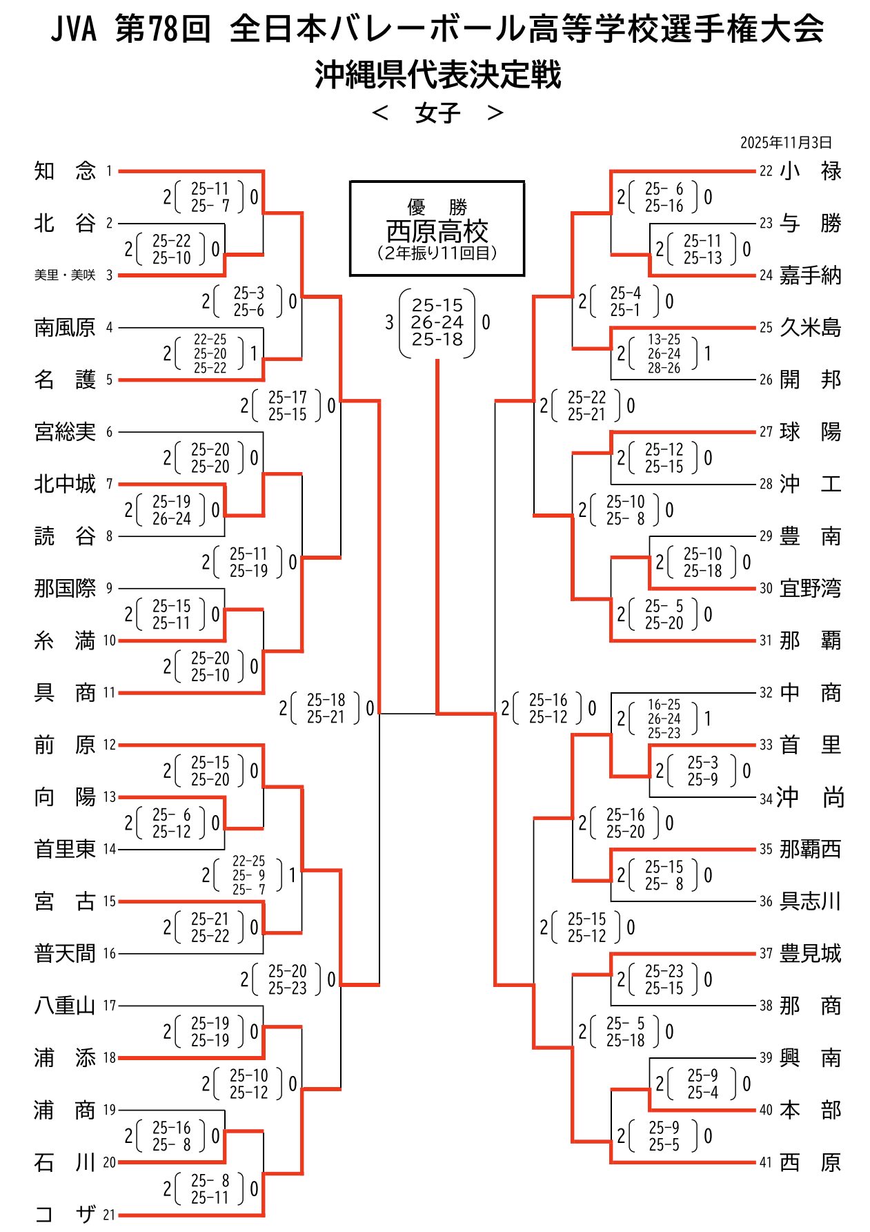 優 勝 西原高校(2年ぶり11回目)