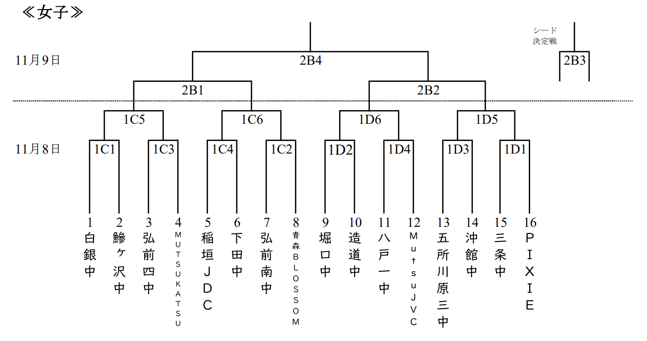 | 弘前第四 | 2 | 25-14 25-9 | 0 | MUTSUKATSU |