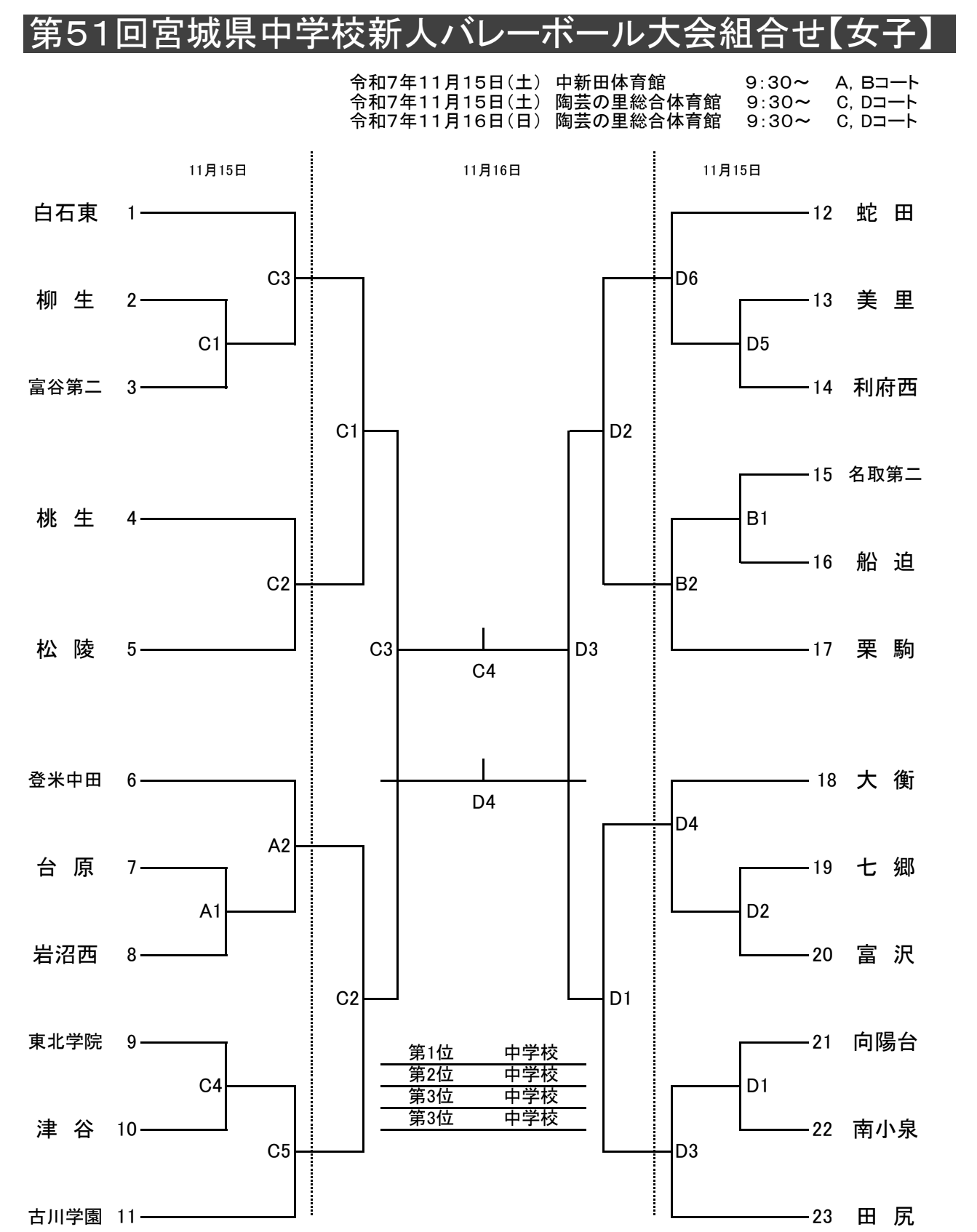 宮城県で『2025年度 県中学校新人バレーボール大会』女子試合が始まります。