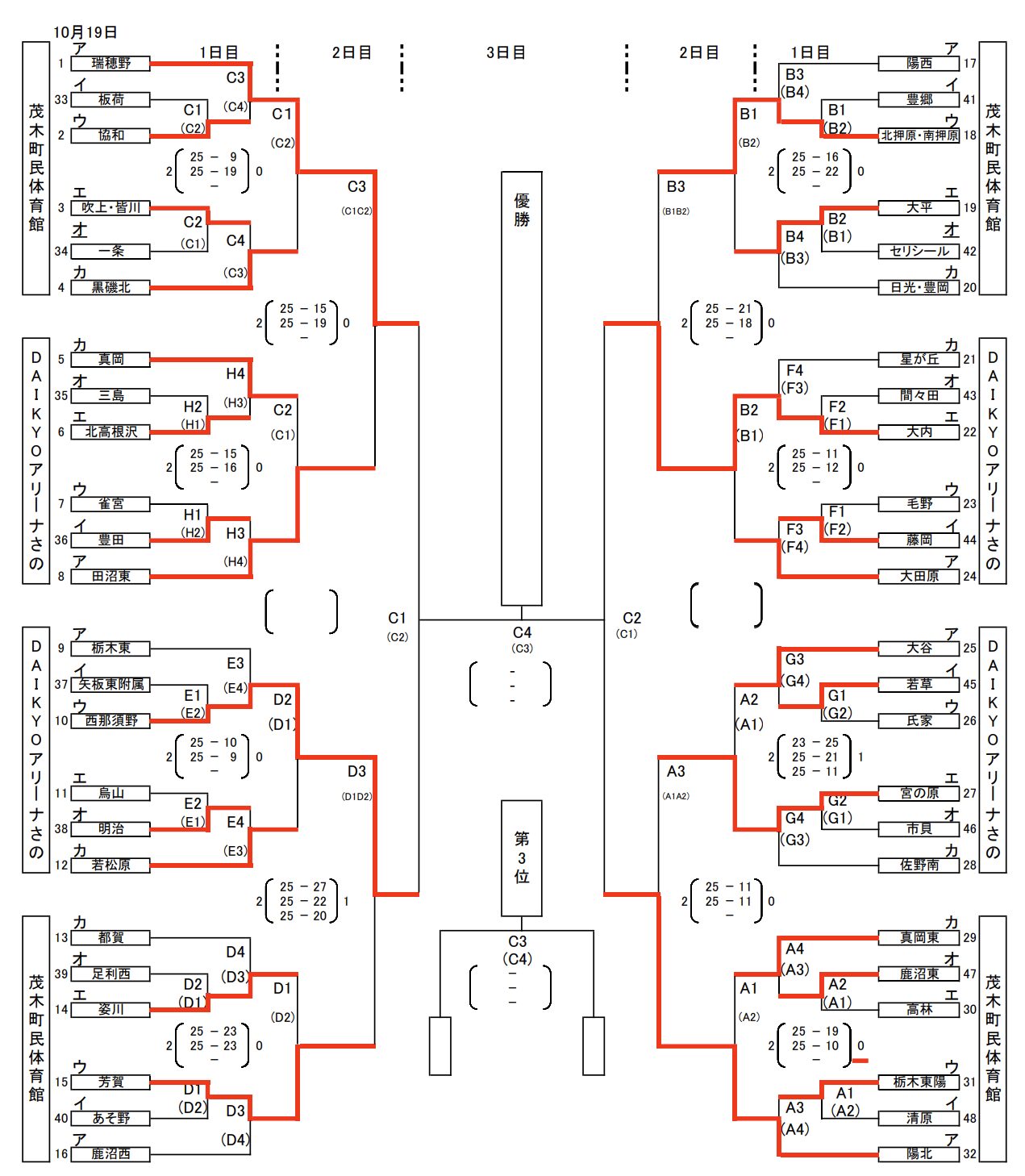 | 吹上・皆川 | 0 | 19-25 19-25 | 2 | 黒磯北 |