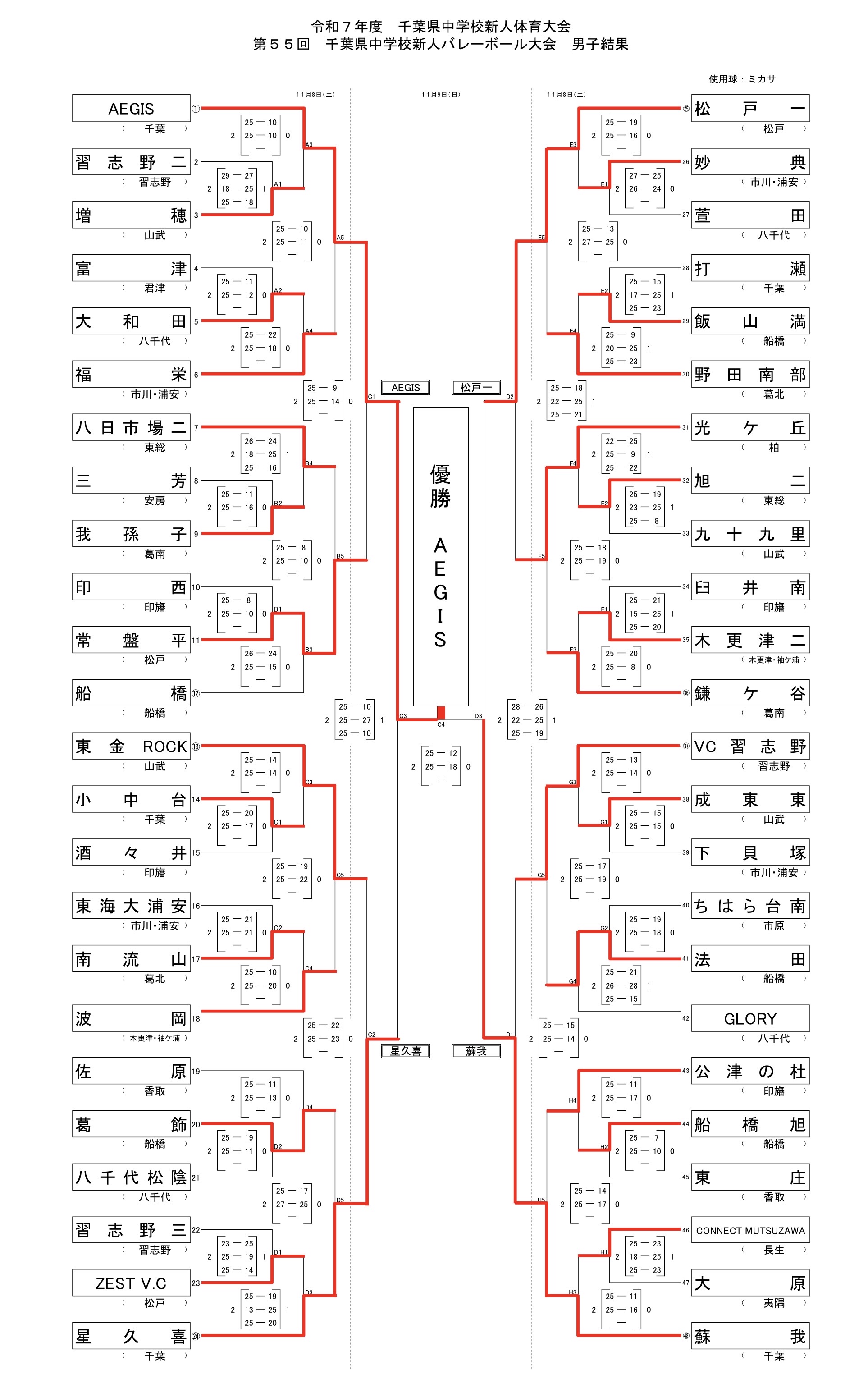 | 松戸一 | 1 | 26-28 25-22 19-25 | 2 | 蘇 我 |