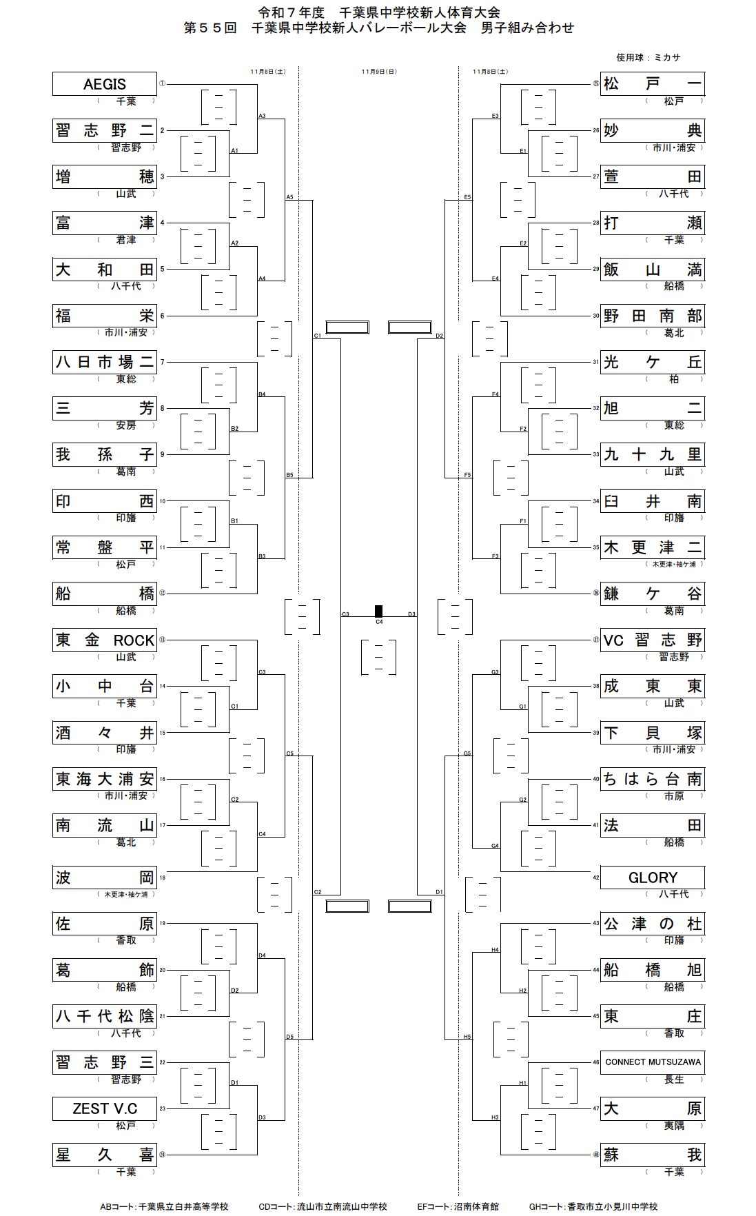 男子 南流山中学校、柏市沼南体育館、小見川中学校 、白井高等学校