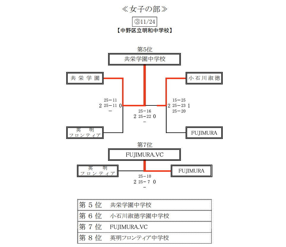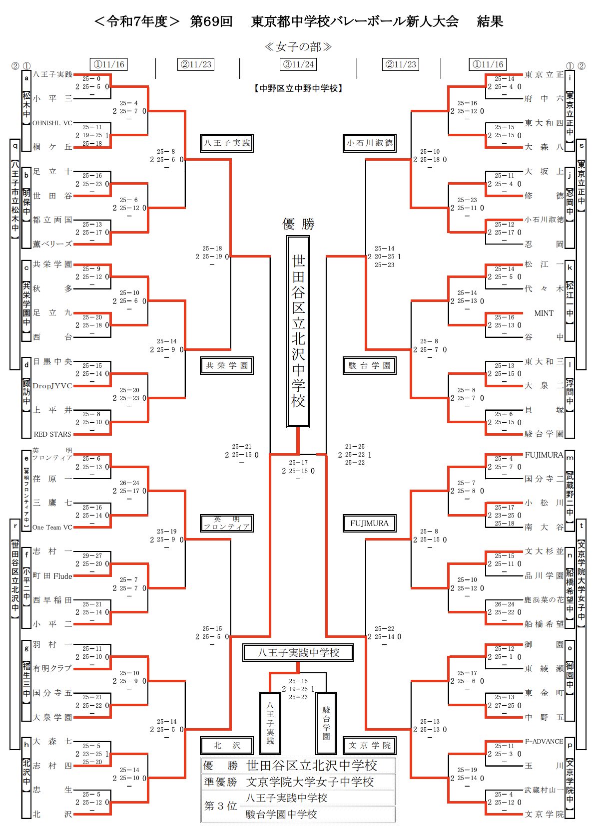 東京 2025中学新人戦|令和7年度 中学校新人バレーボール大会 女子結果