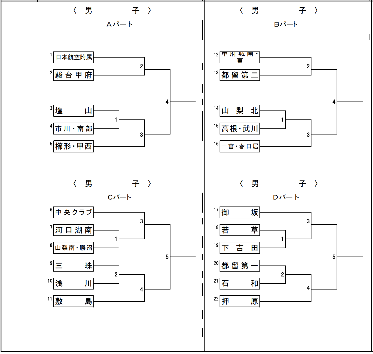 | 日本航空附属 | 2 | 25-7 25-7 | 0 | 櫛形・甲西 |