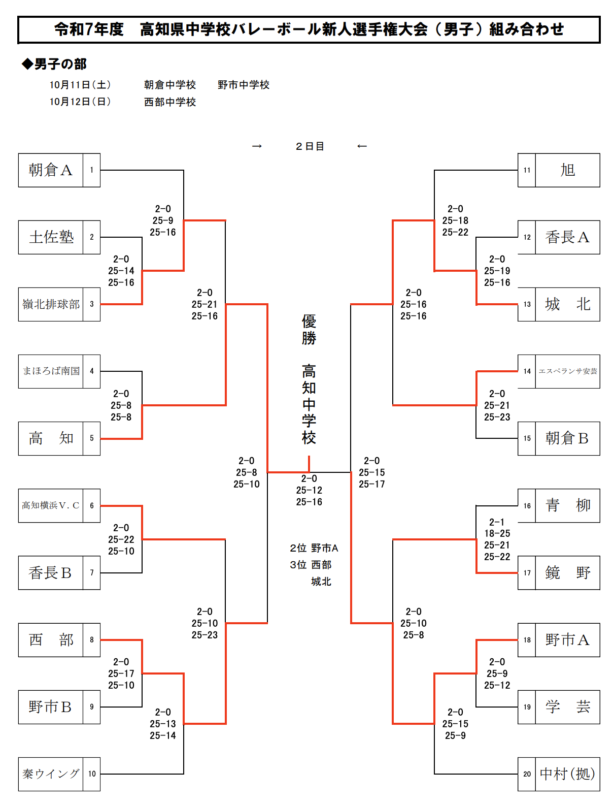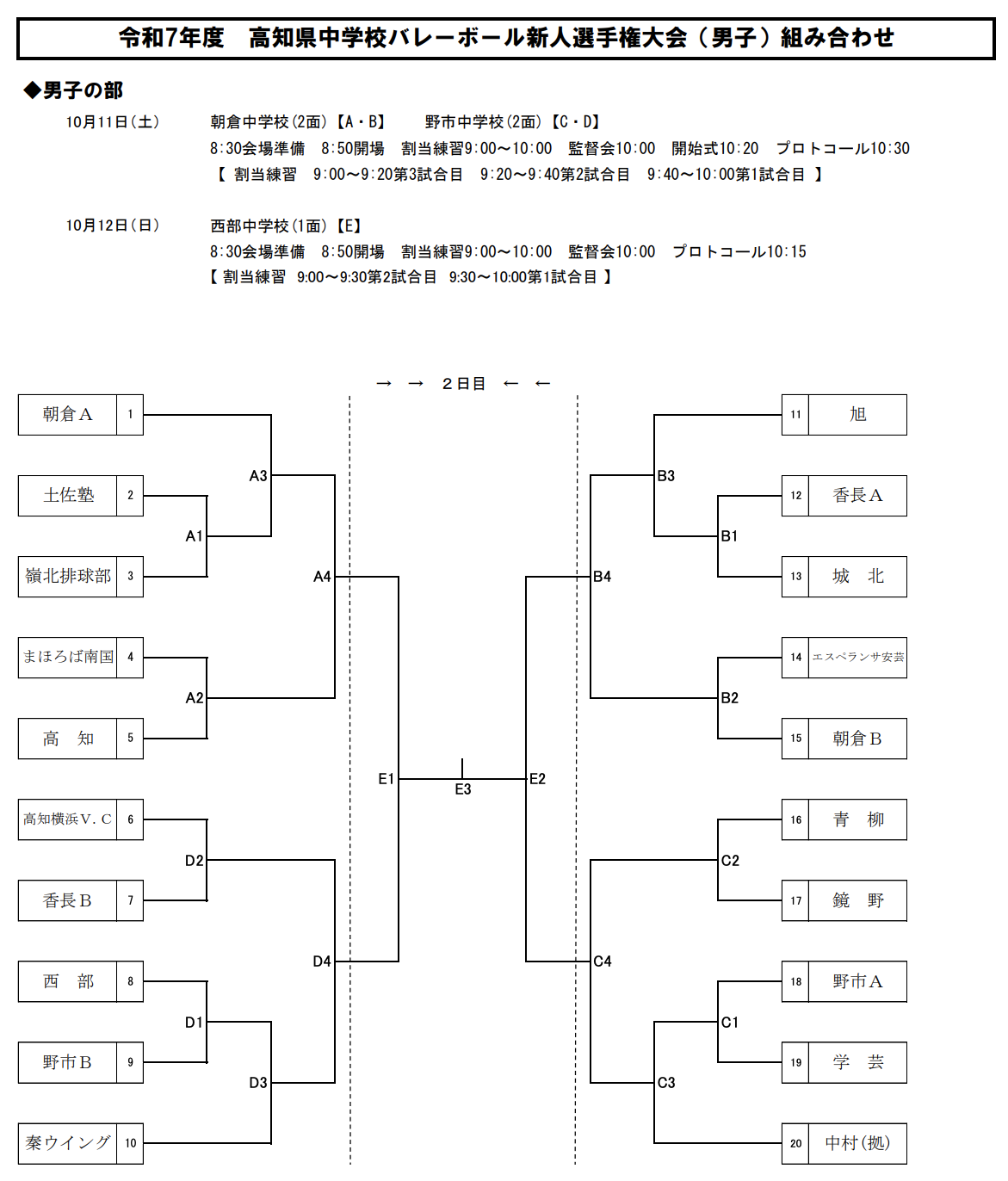 高知県で『2025年度 県中学校新人バレーボール大会』男子試合が始まります。