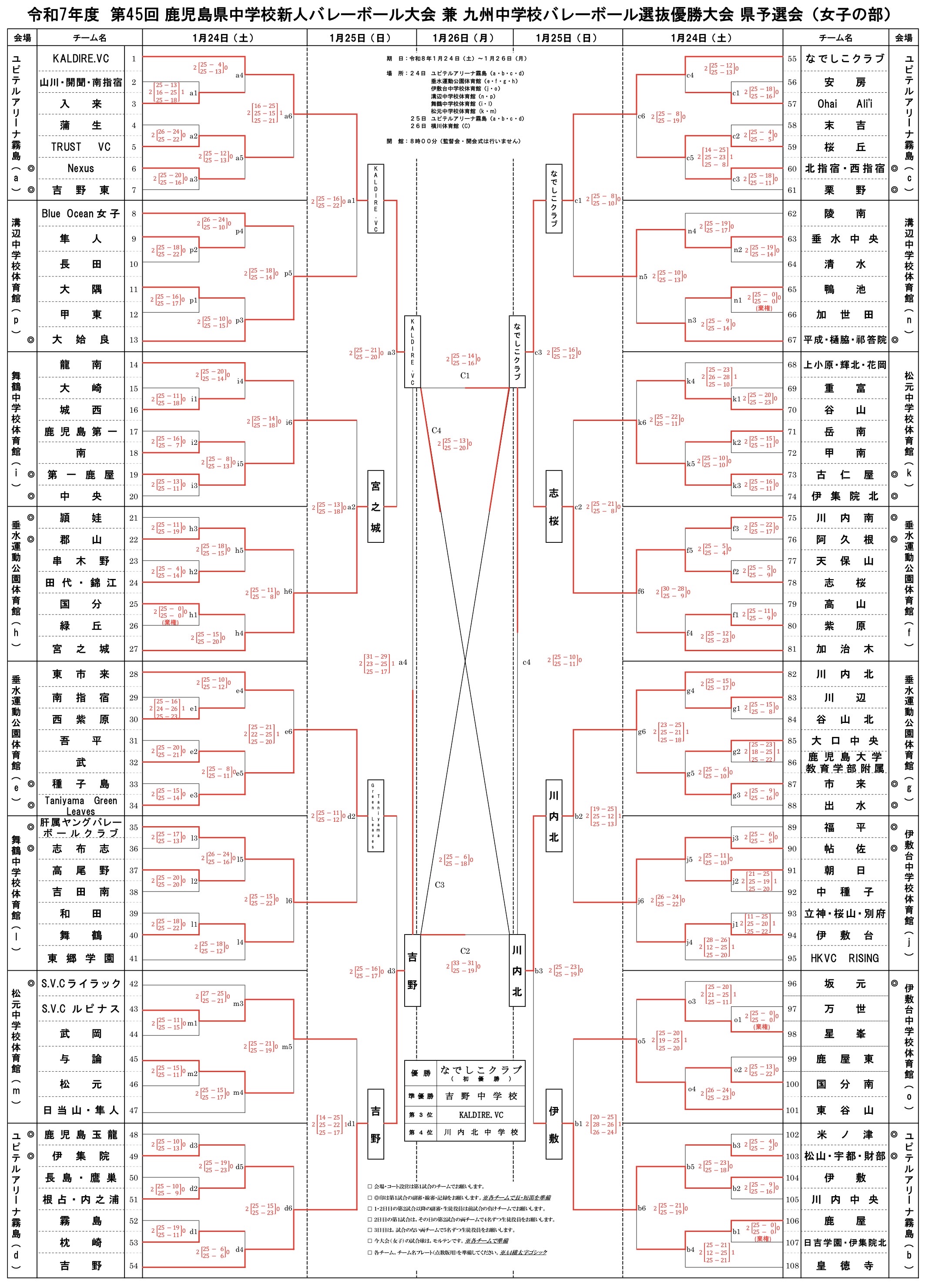 鹿児島 2025中学新人戦|令和7年度 中学校新人バレーボール大会 女子結果