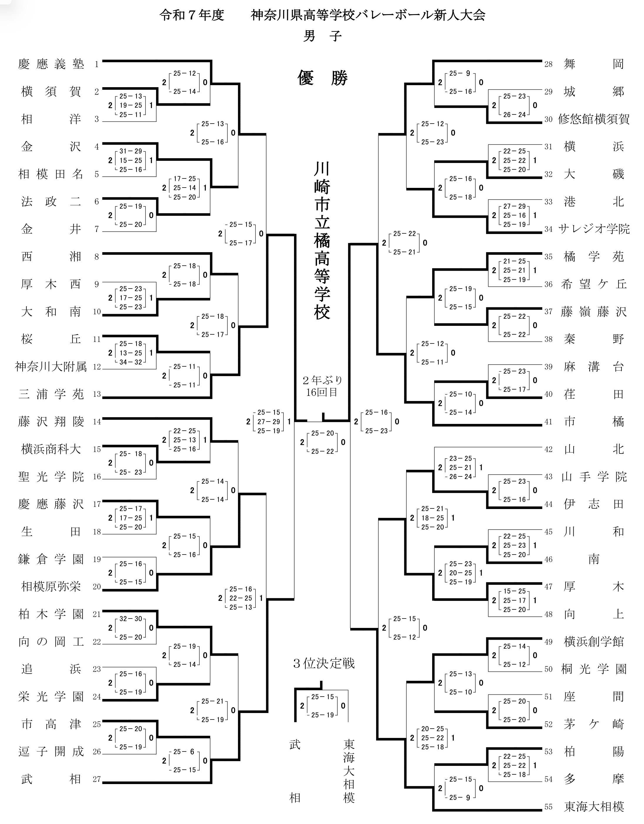| 武 相 | 2 | 25-15 25-19 | 0 | 東海大相模 |