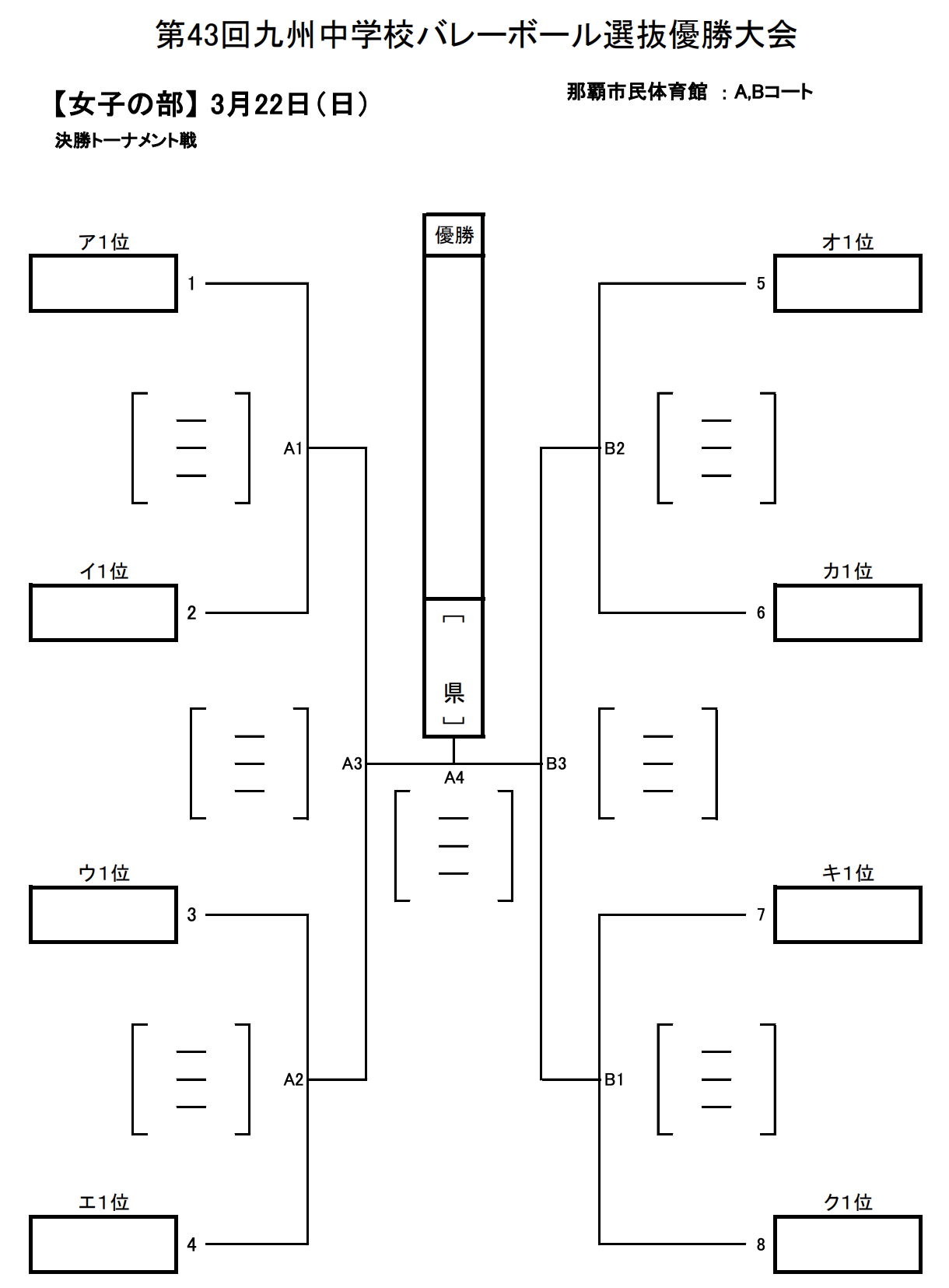 | あげな (沖縄県1位) | 1 | 25-22 20-25 15-25 | 2 | 宮崎日大 (宮崎県2位) |