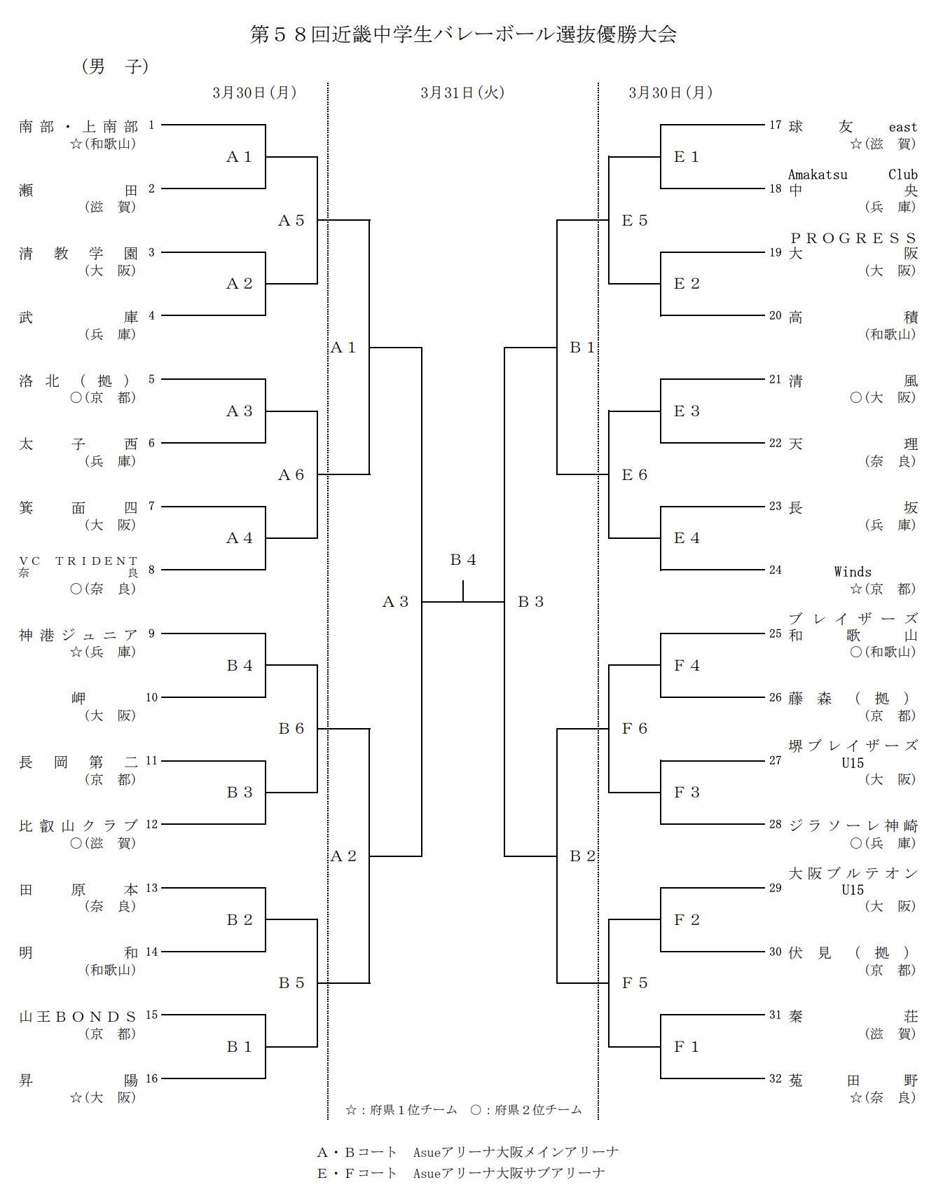 | 箕面四 (大阪5位) | 0 | 0-0 0-0 0-0 | 0 | VC TRIDENT奈良 (奈良1位) |