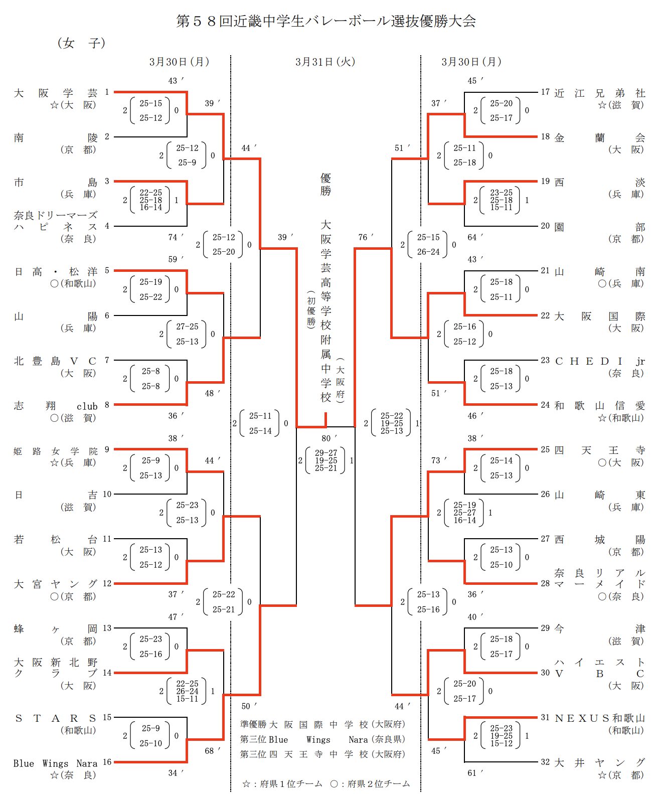 | 四天王寺 (大阪2位) | 2 | 25-19 25-27 16-14 | 1 | 奈良リアルマーメンド (奈良2位) |