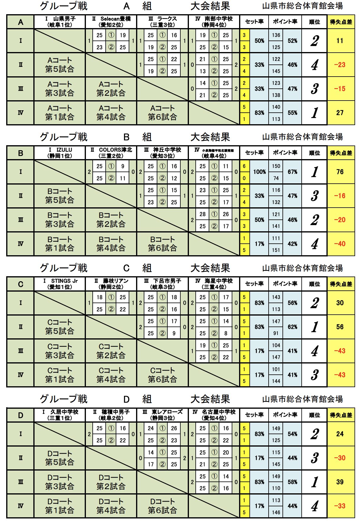 ◆女子試合結果は、下記記事を参照下さい。