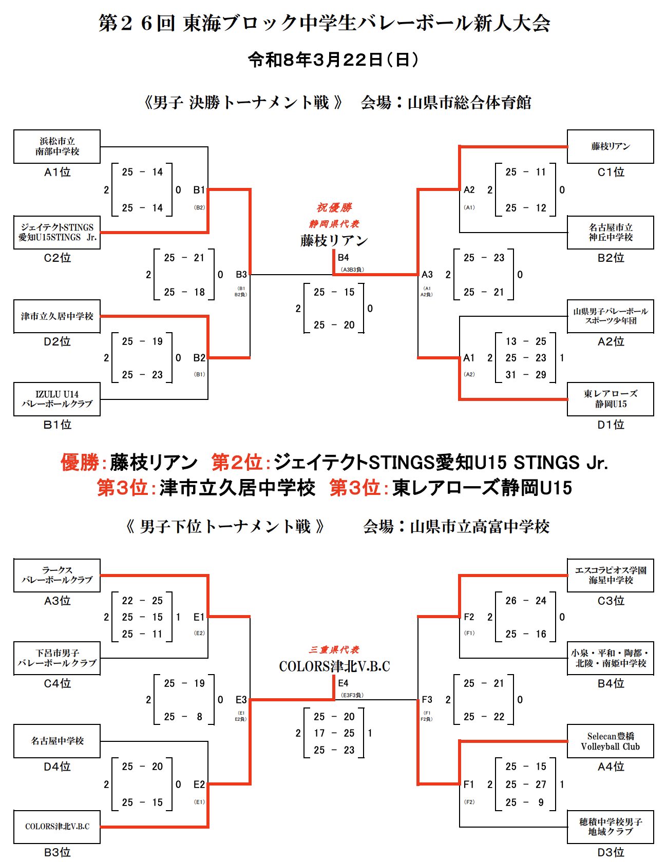 2025ブロック新人戦|令和7年度 東海中学生新人バレーボール大会 男子結果