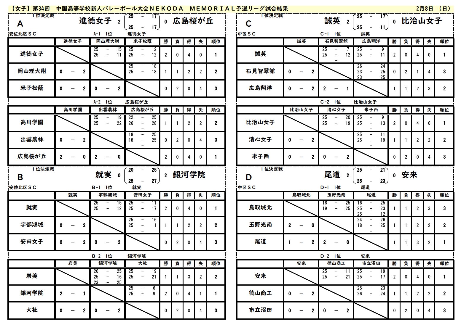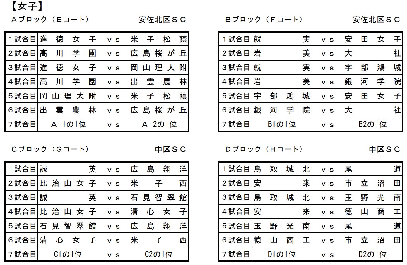 Dブロック予選順位
