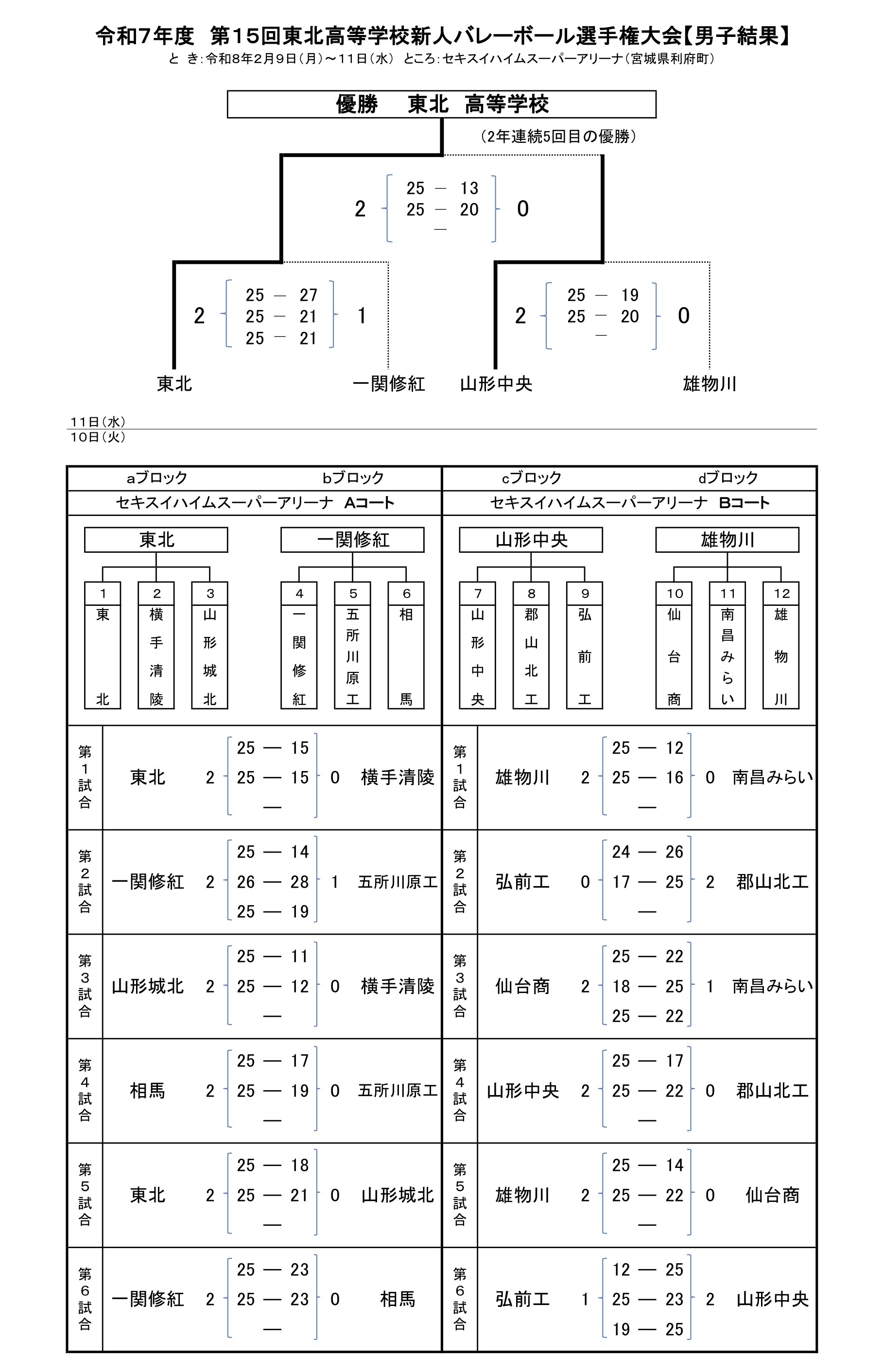 東北ブロック男子の新人戦全ての試合が終了しました。