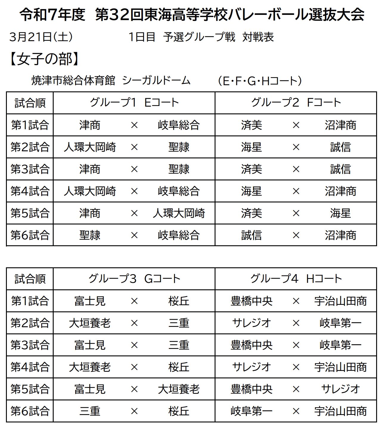 静岡県で『令和7年度 第32回東海高等学校新人バレーボール選抜大会』が始まります。