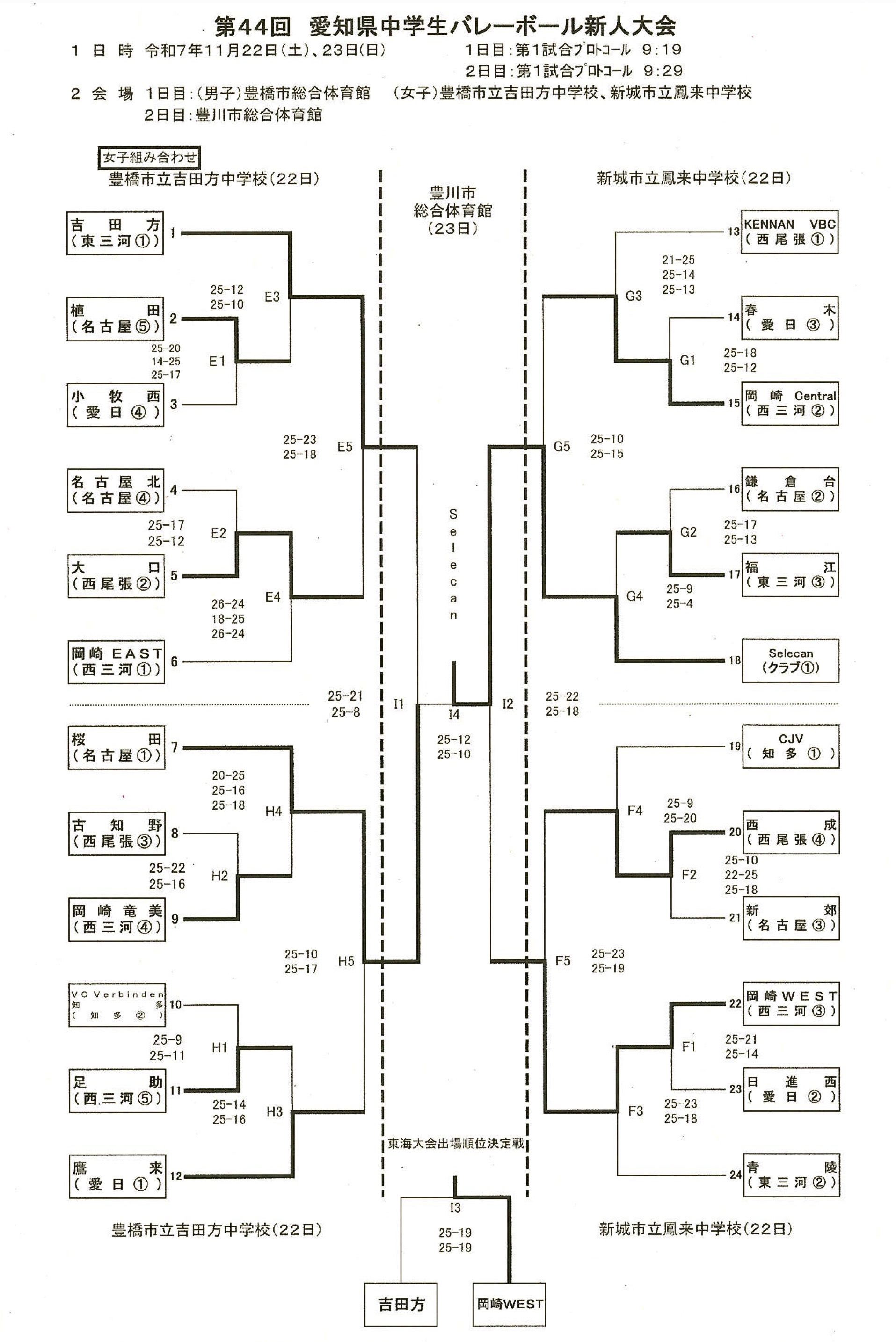 | 岡崎WEST | 2 | 25-21 25-14 | 0 | 日進西 |