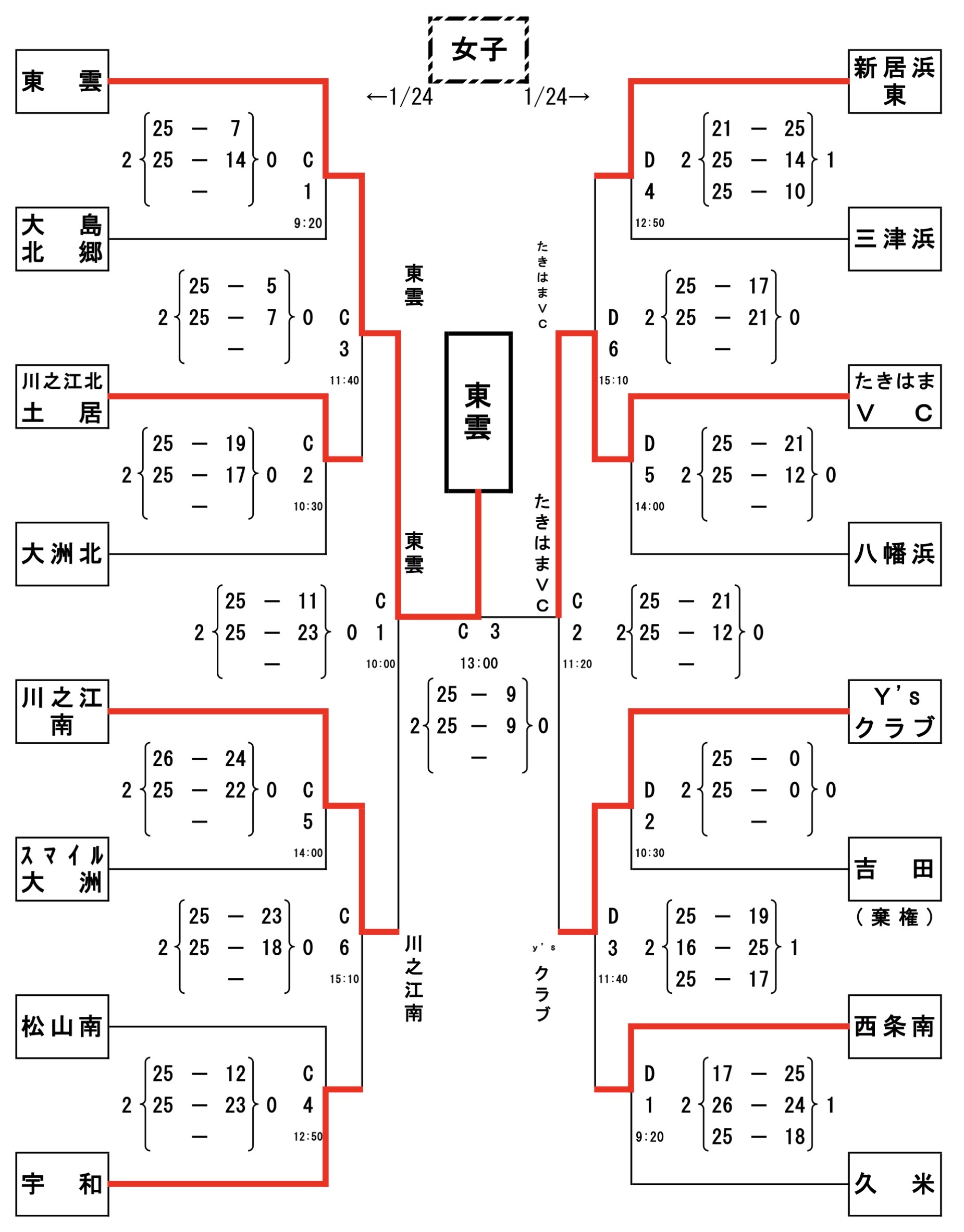 | 東 雲 | 2 | 25-9 25-9 | 0 | たきはまVC |