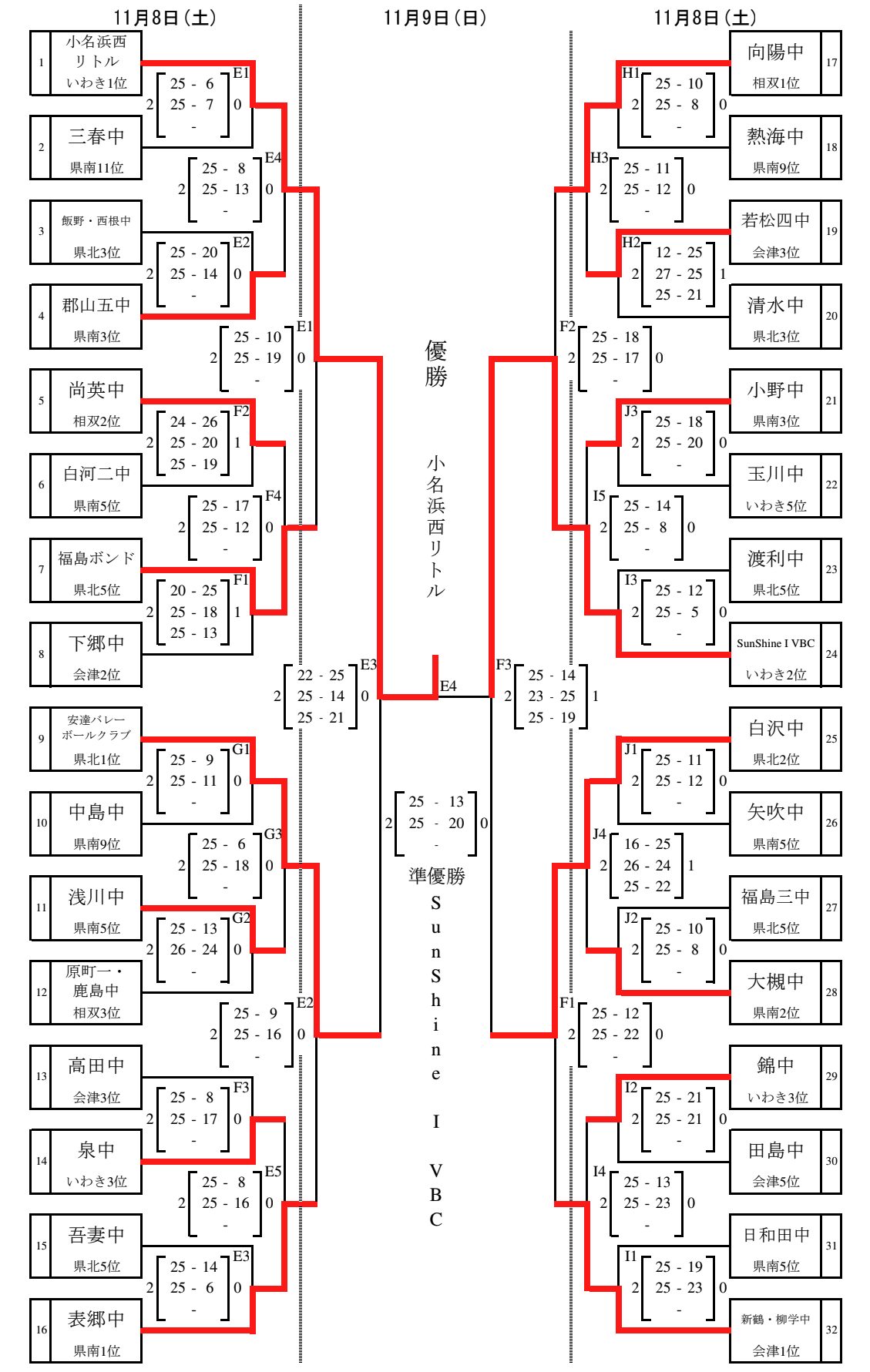 | 小名浜西リトル | 2 | 25-13 25-20 | 0 | SunShine I VBC |