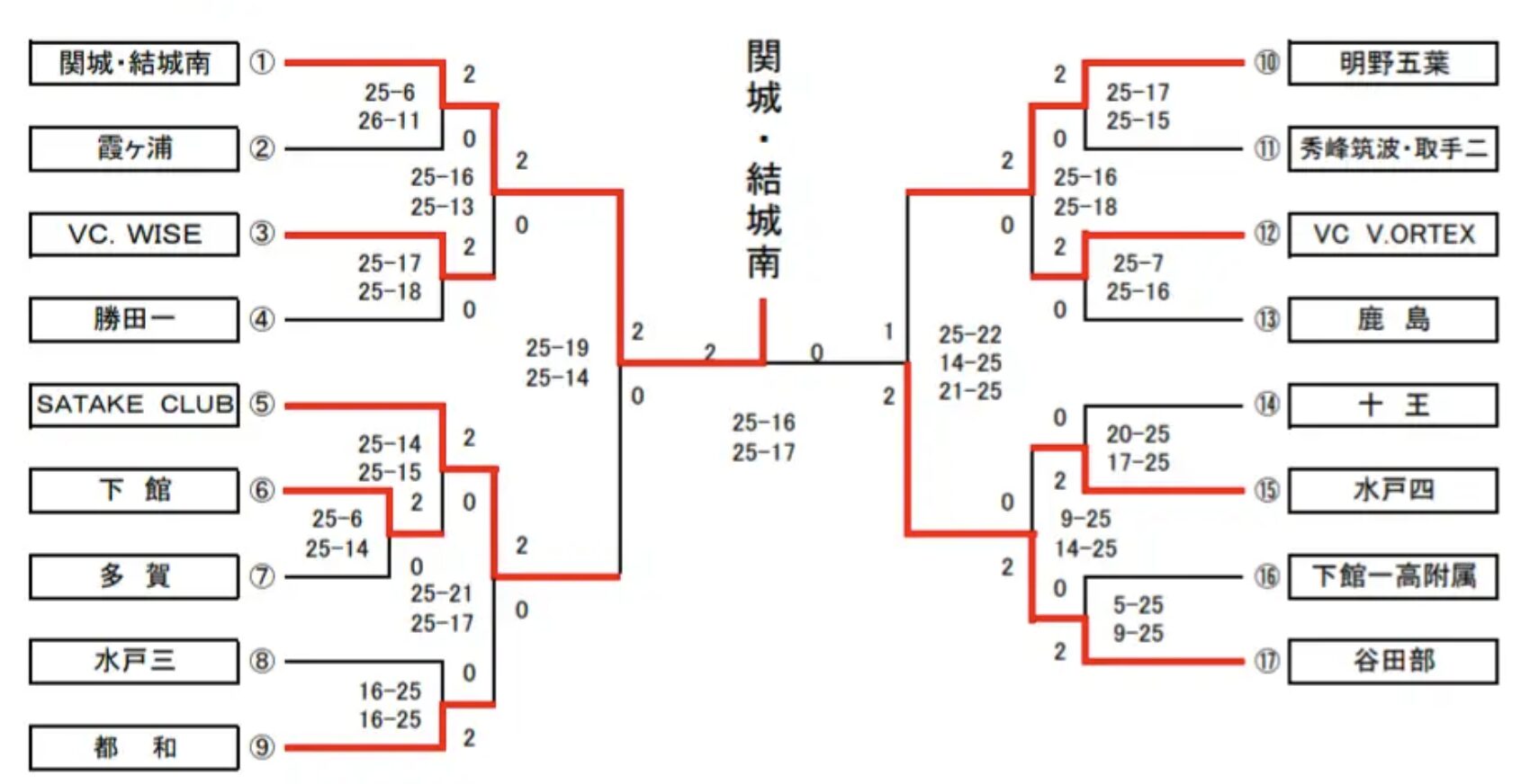 | 関城・結城南 | 2 | 25-19 25-14 | 0 | SATAKE CLUB |