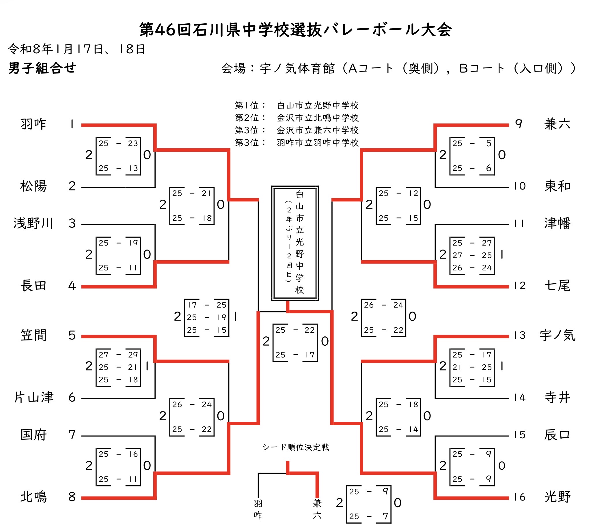 石川 2025中学新人戦|令和7年度 中学校新人バレーボール大会 男子結果