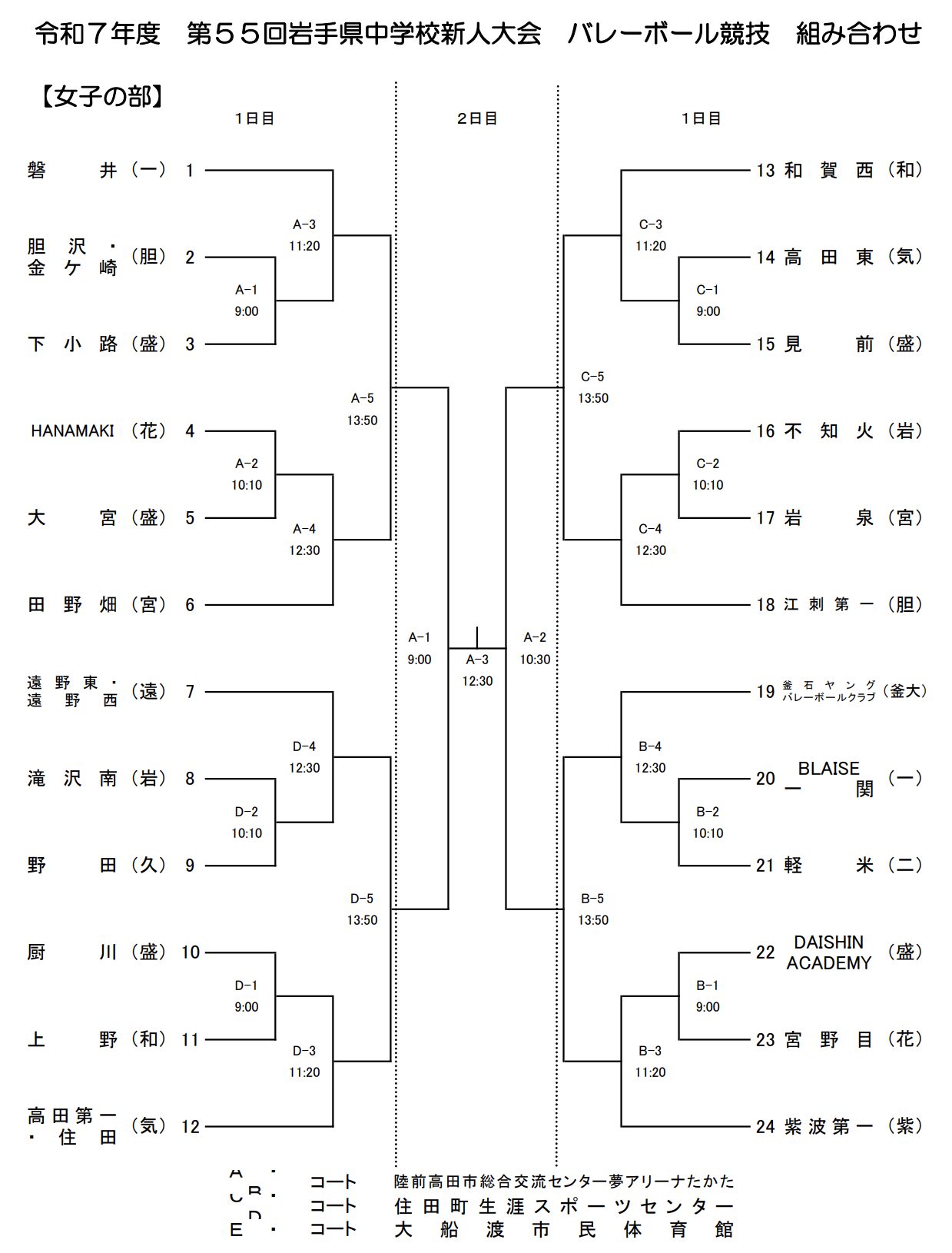 岩手 2025中学新人戦|令和7年度 中学校新人バレーボール大会 女子結果