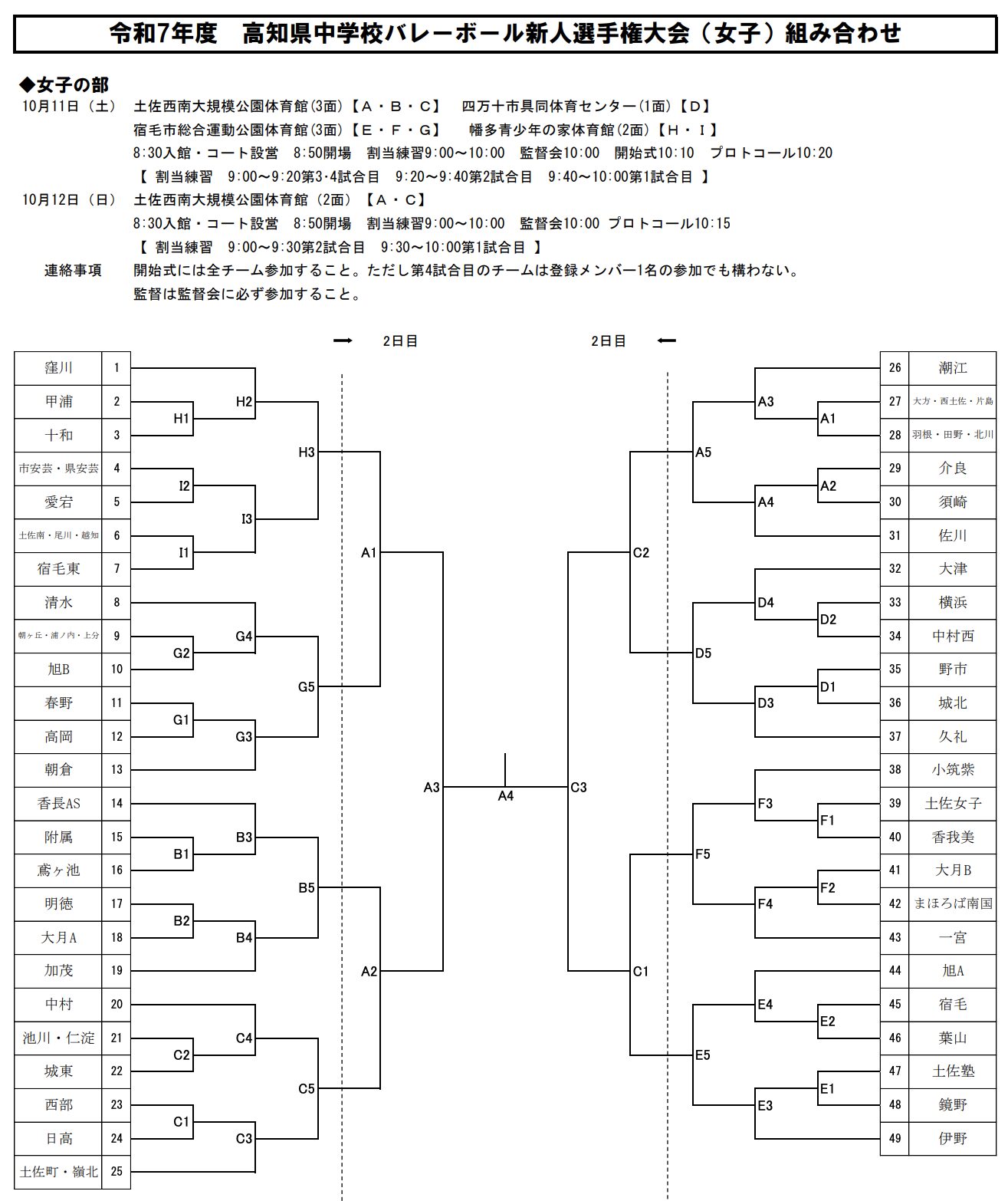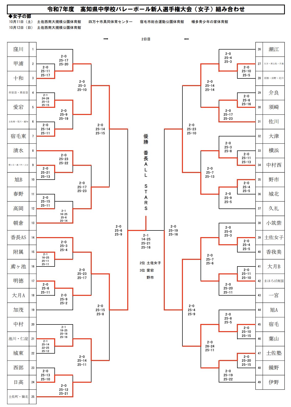 高知 2025中学新人戦|令和7年度 中学校新人バレーボール大会 女子結果