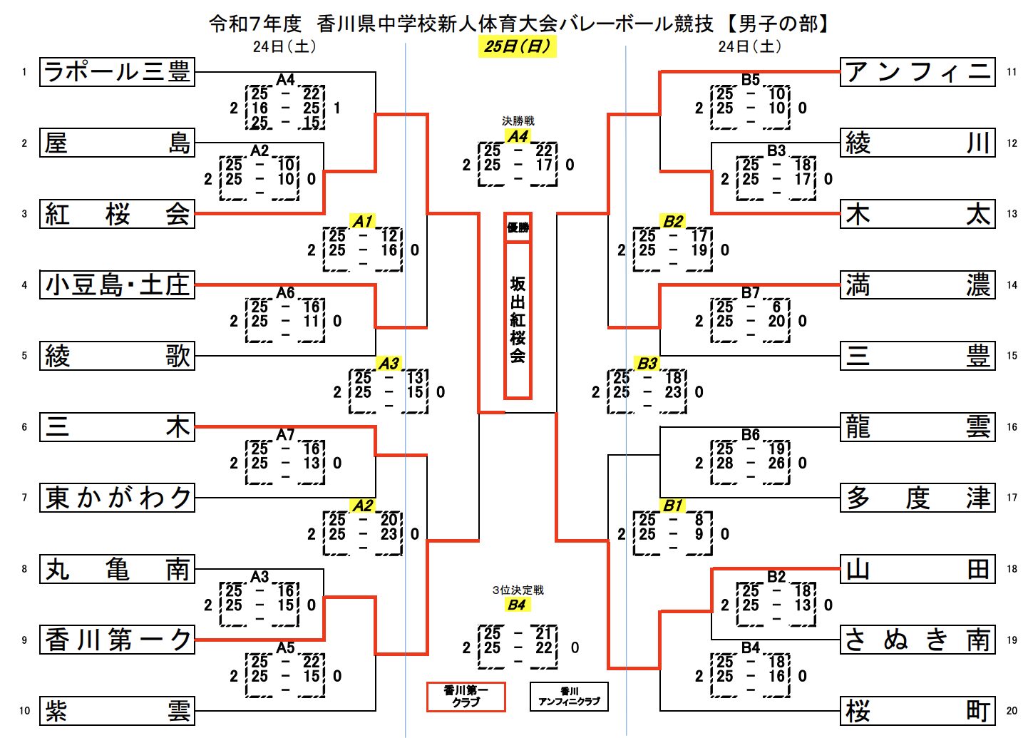 | 満 濃 | 2 | 25-6 25-20 | 0 | 三 豊 |