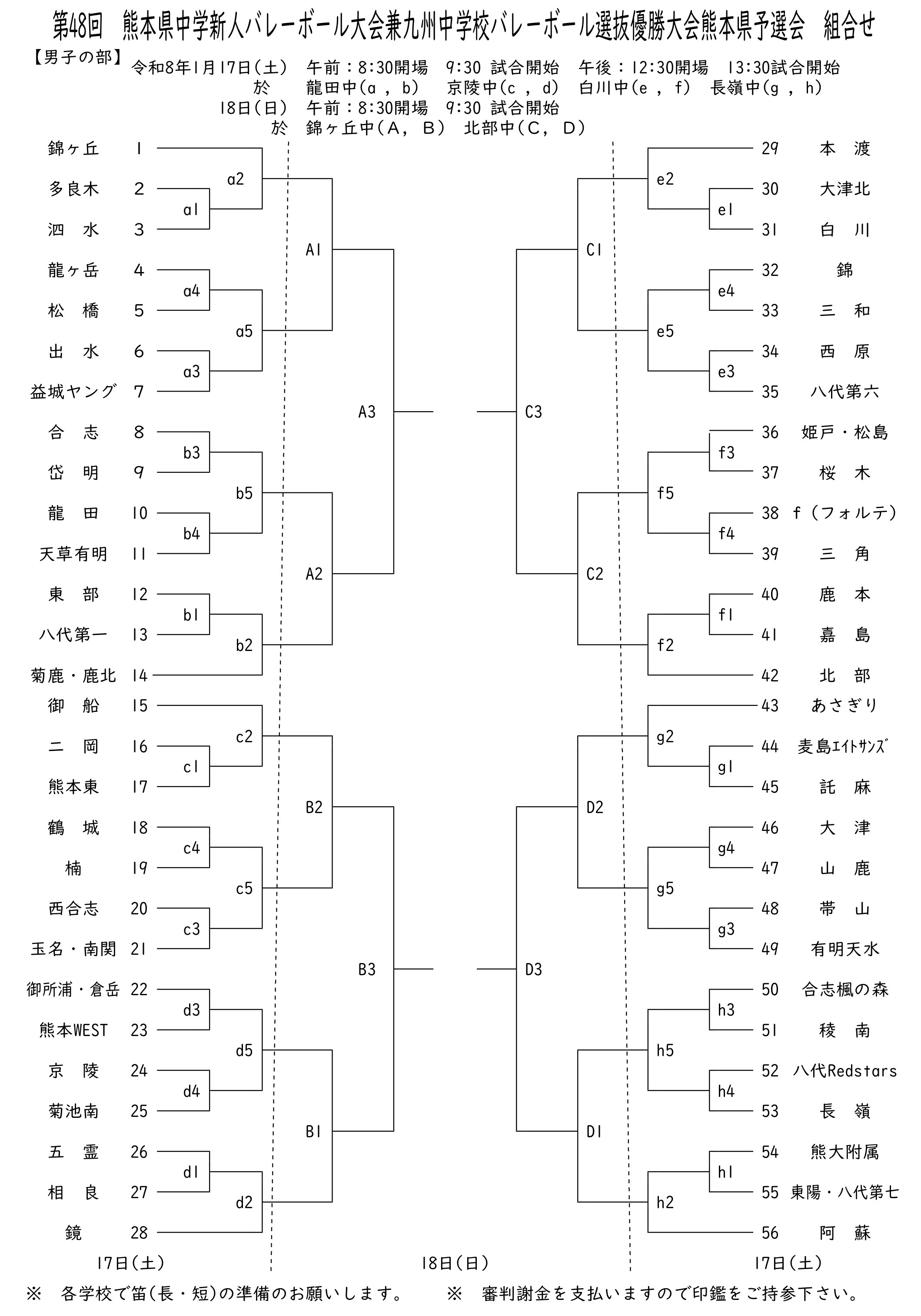 熊本県で『2025年度 県中学校新人バレーボール大会』男子試合が始まります。