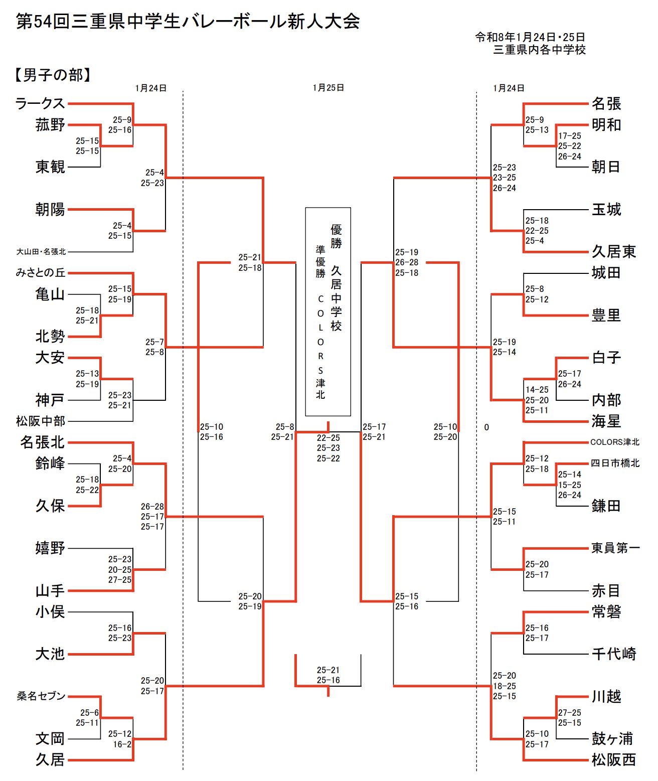 | 四日市橋北 | 2 | 25-14 15-25 26-24 | 1 | 鎌 田 |