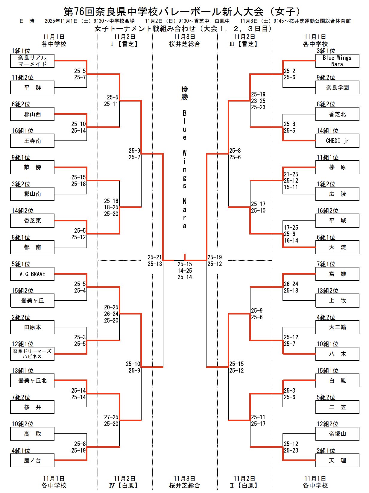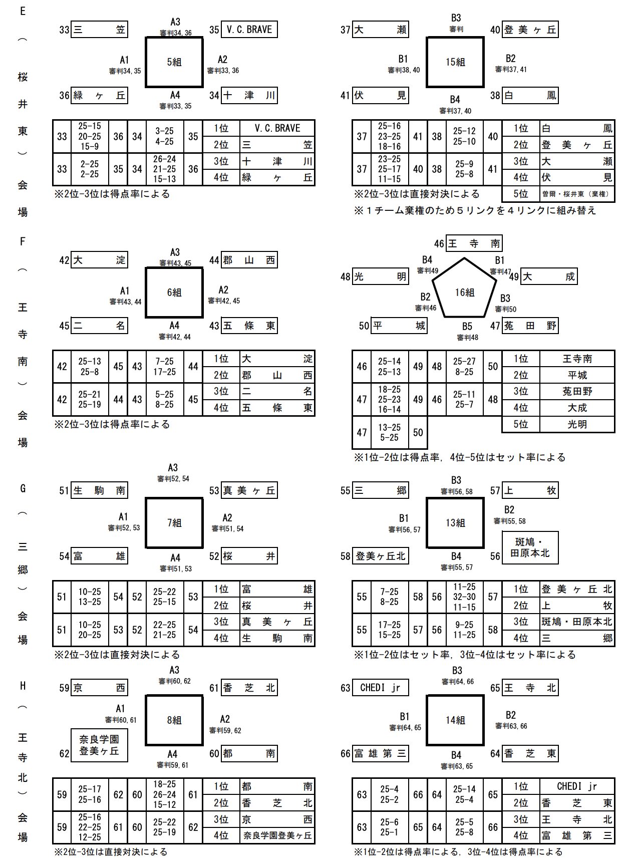 | 登美ヶ丘北 | 2 | 27-25 25-20 | 0 | 鹿ノ台 |