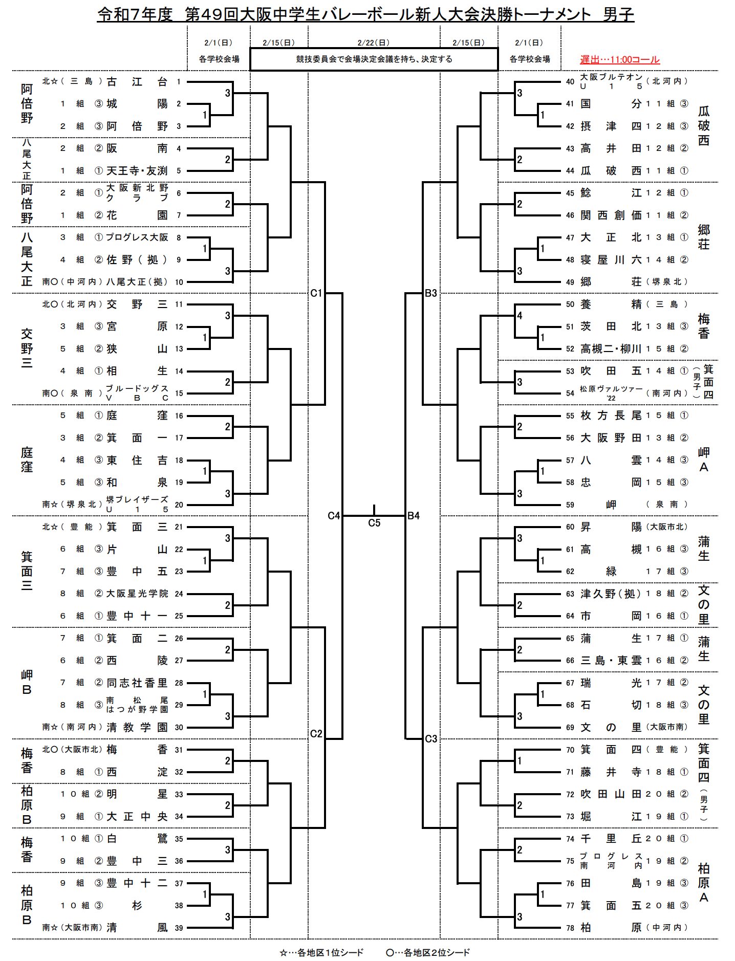 大阪府で『2025年度 府中学校新人バレーボール大会』男子試合が始まります。