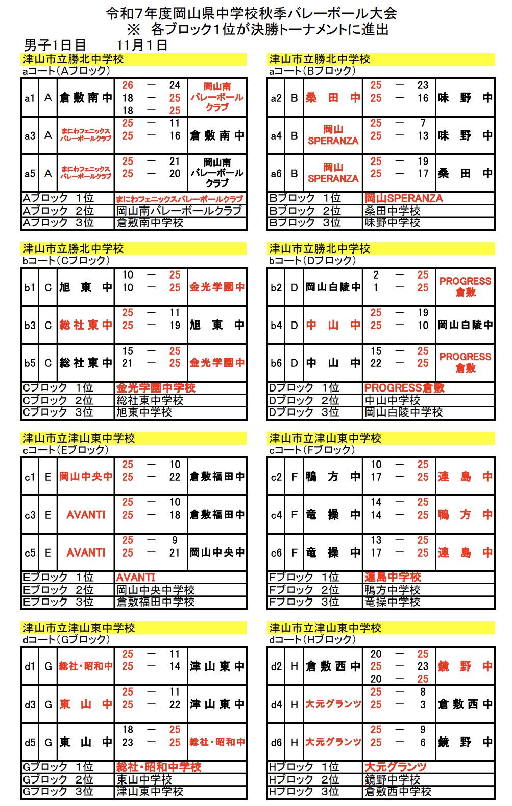 岡山県で『2025年度 県中学校秋季バレーボール大会』男子試合が始まります。