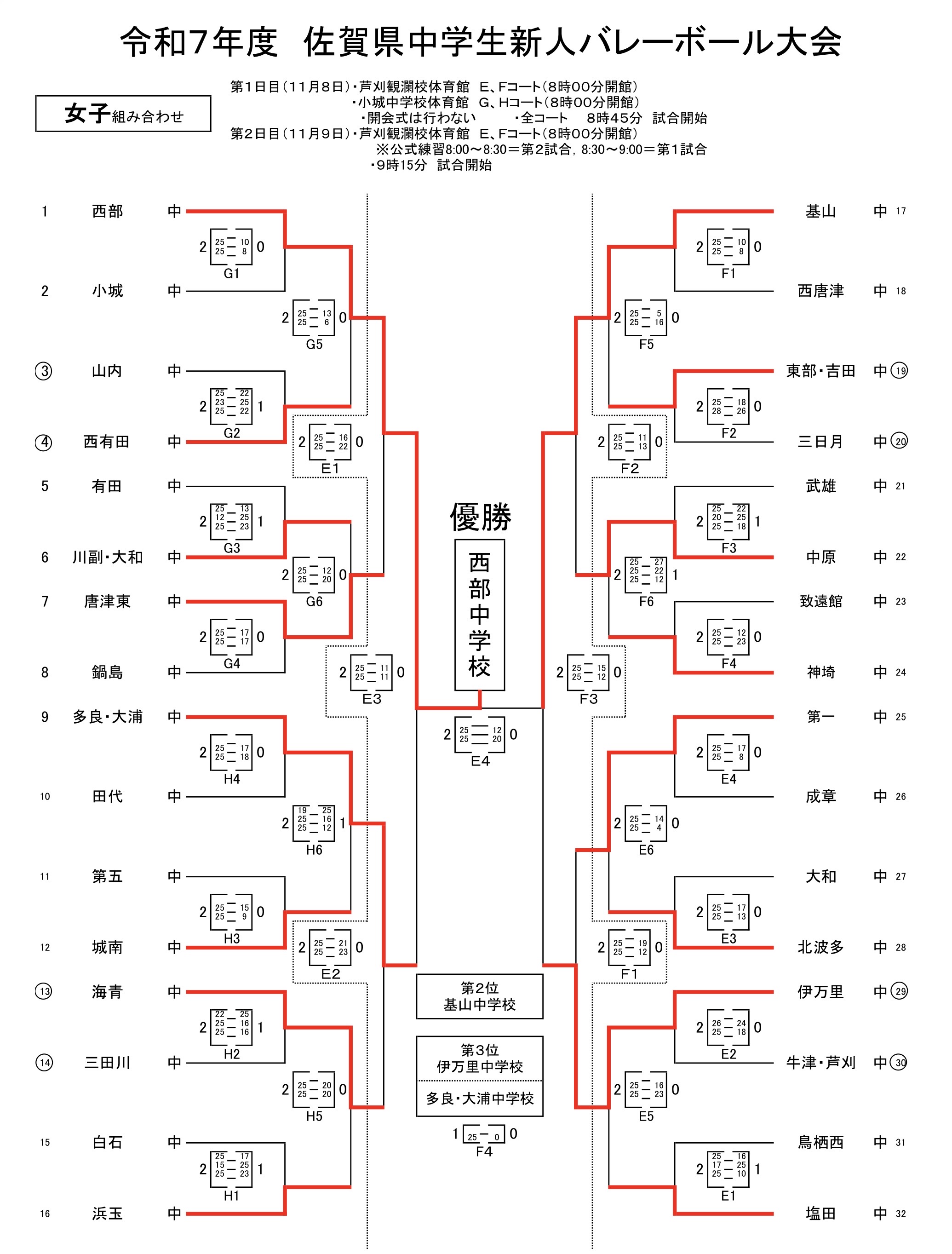 | 西 部 | 2 | 25⁻16 25₋22 | 0 | 唐津東 |
