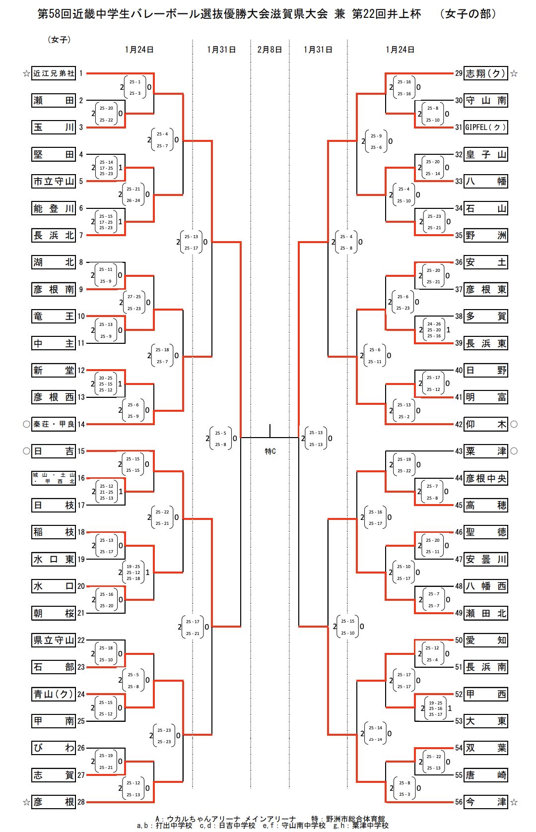 滋賀 2025中学新人戦|令和7年度 中学校新人バレーボール大会 女子結果