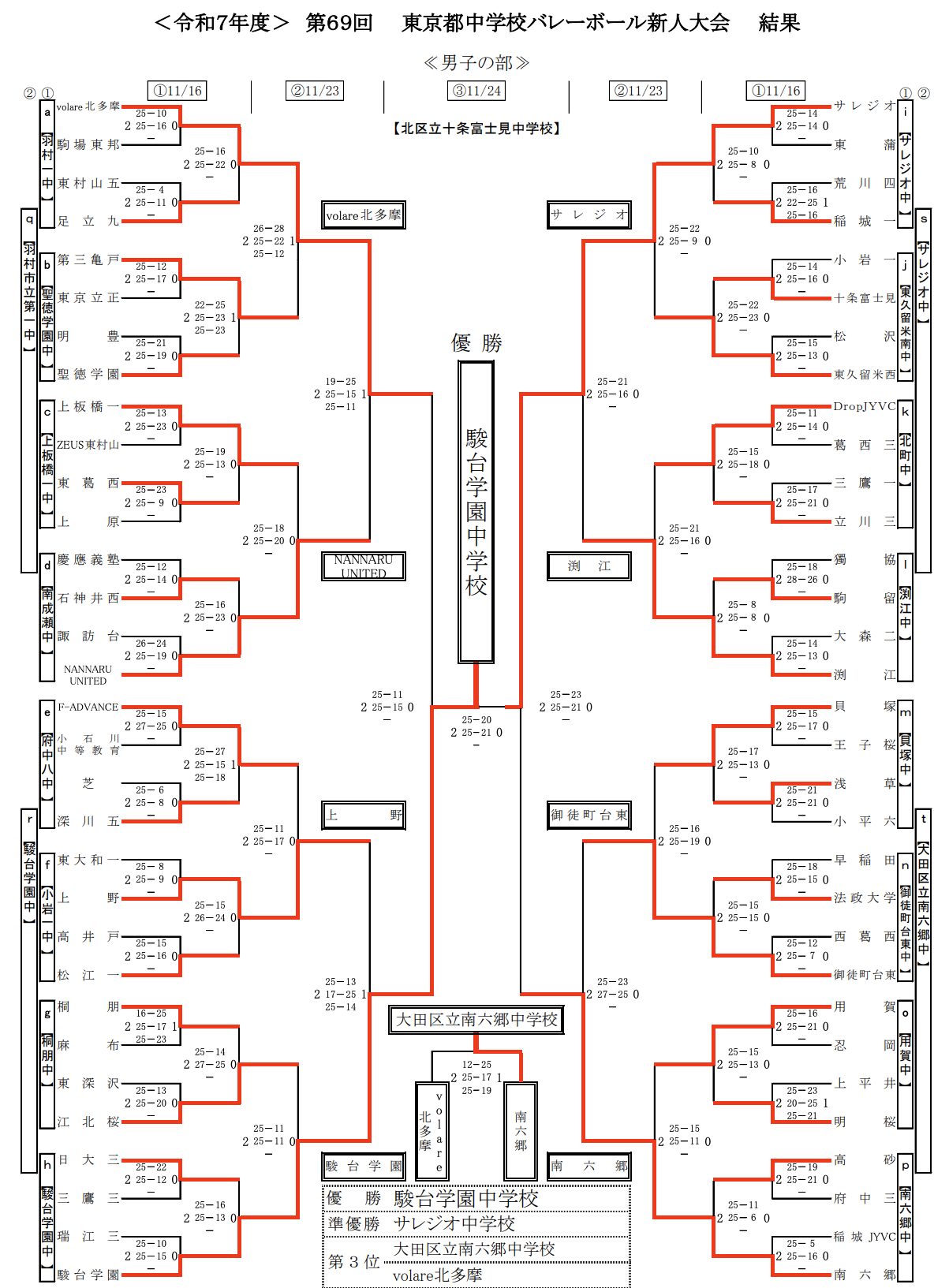 | 江北桜 | 0 | 11-25 11-25 | 2 | 駿台学園 |