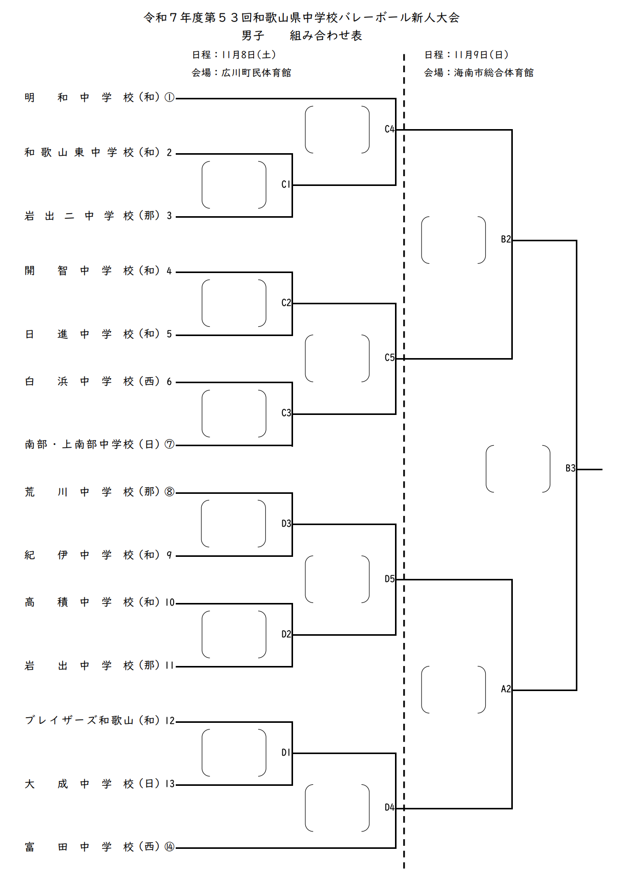 和歌山 2025中学新人戦|令和7年度 中学校新人バレーボール大会 男子結果